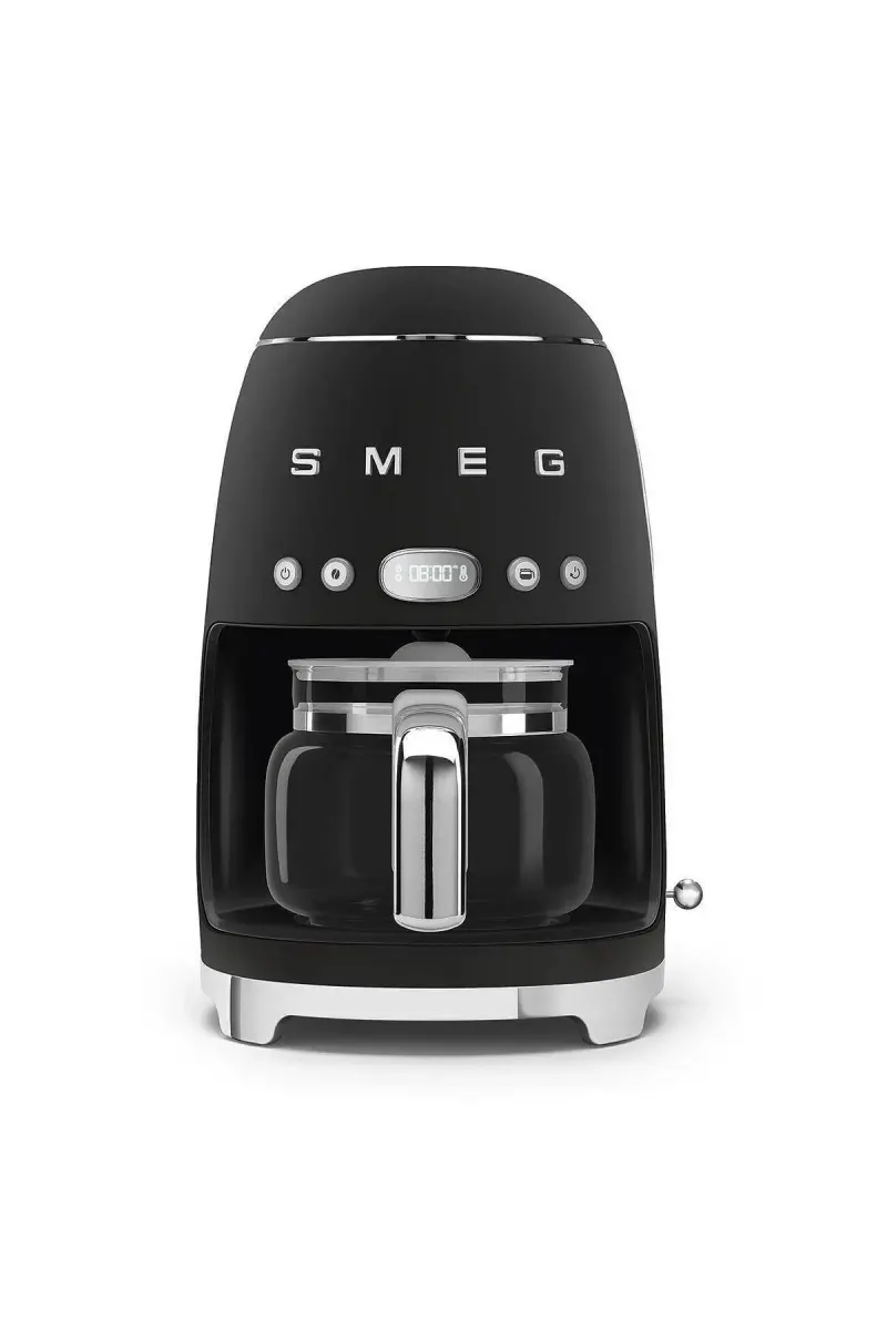The 50'S Style DCF02 Matte Black Filter Coffee Maker Special Edition will impress you not only with its stylish appearance, but also with its superior performance. The 1.25-liter glass carafe allows you to serve delicious and hot coffee to multiple people at once, while its drip system ensures that every cup is perfectly brewed.
