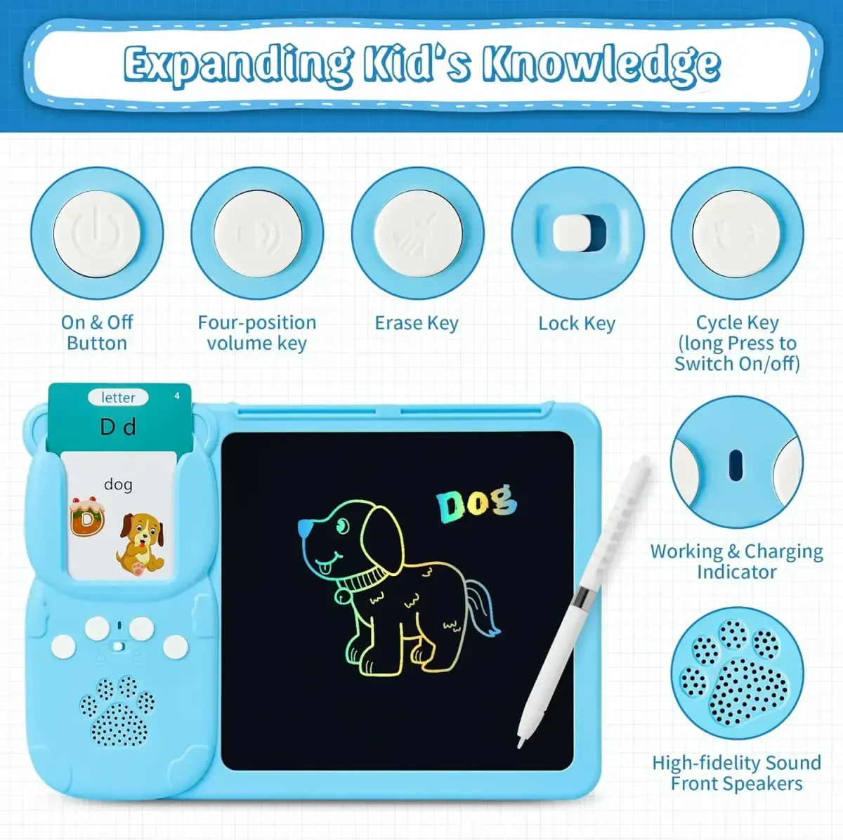 510 Words Talking Flash Cards Learning Toys are an interactive learning tool that helps your children improve their reading, pronunciation, spelling, writing, and drawing skills. It is an excellent choice for homeschooling, preschool, and speech therapy. This toy expands children's vocabulary while also supporting their hand-eye coordination and creativity. This set, which includes 510 visual words, is collected under 31 different themes and consists of 255 double-sided flash cards. Realistic animal and car sounds stimulate children's sound abilities, while colorful drawings attract their attention and increase their interest in learning. Thanks to the LCD eye protection wide color screen, your children can comfortably draw and write on the erasable drawing board. They can freely use their imagination, doodle, and have hours of fun while staying away from the electronic screen. Made of lightweight and durable ABS material, it can be easily charged thanks to its built-in USB rechargeable battery. With its portable design and storage bag, it is ideal for entertainment on trips or anywhere. Perfect for long bus rides or having fun anytime, anywhere. It is a perfect gift for girls and boys ages 3, 4, 5 and 6 on birthdays, Christmas and other holidays. It is a perfect gift for children and teachers to learn games in the classroom. This educational toy supports children's language development while providing a fun and interactive learning experience. The vibrant colors and engaging visuals on the flashcards grab children's attention and make the learning process more enjoyable. Both fun and educational, this toy is a great option to contribute to children's development.