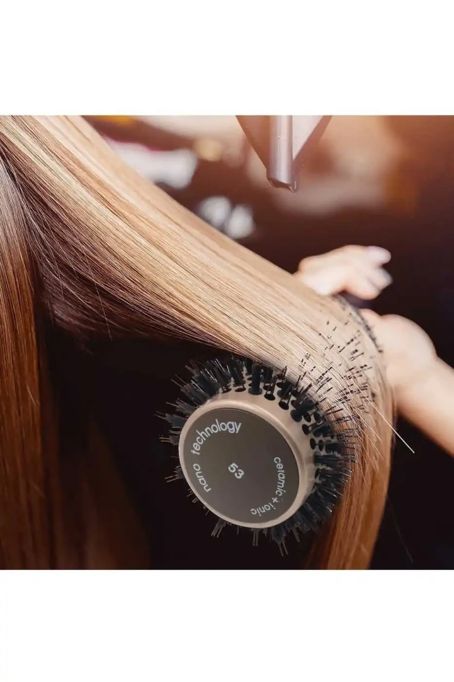 Готовы вывести свой уход за волосами на новый уровень? 53 Mm-lom1144 Нанотехнологическая керамическая ионная термическая щетка для волос предлагает вам безупречный опыт с использованием новейших технологий и натуральной щетины из конского волоса.