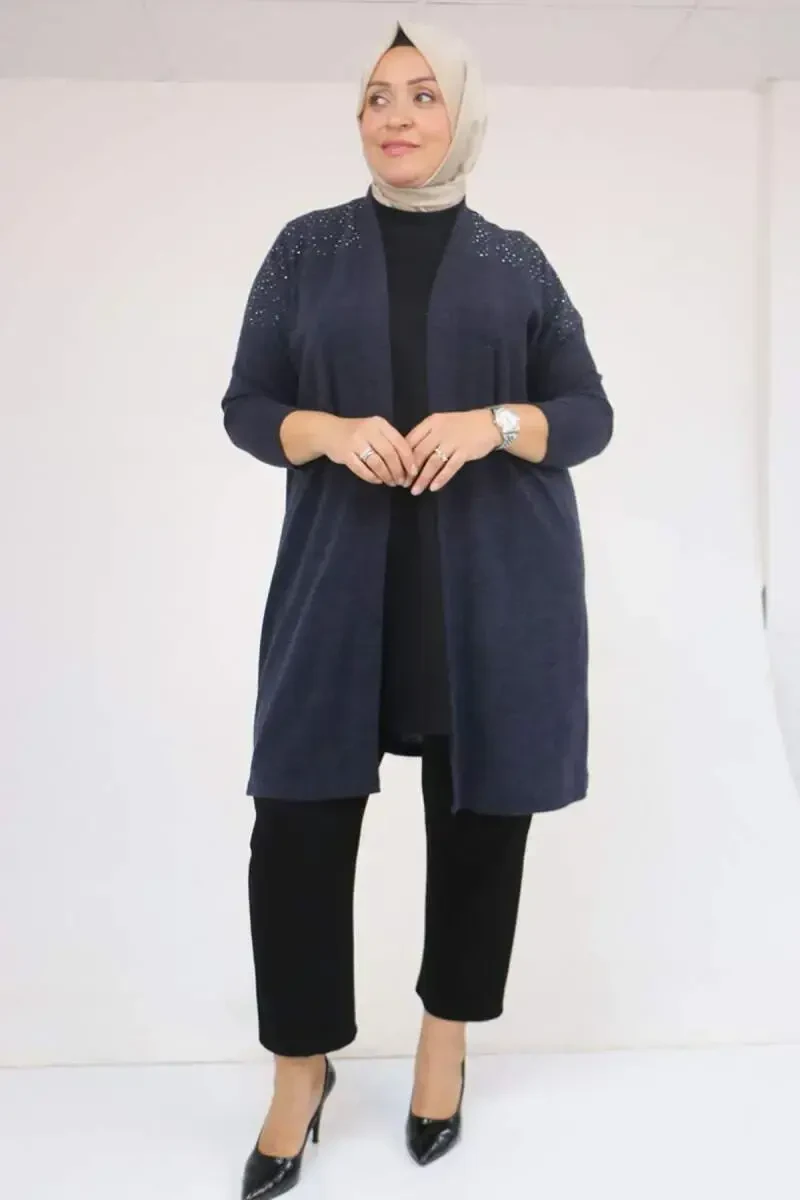 Şıklığı ve konforu bir arada sunan 53047 Büyük Beden Omzu Taş Detaylı Mir Ceket - Lacivert ile tanışın! Sonbahar ve kış aylarında gardırobunuzun vazgeçilmezi olacak bu ceket, özel tasarımı ve kaliteli kumaşıyla dikkat çekiyor. Büyük beden kadınların vücut hatlarını kusursuzca saran kalıbı, her ortamda kendinizi güvende ve şık hissetmenizi sağlar. Mir kumaşın eşsiz dokusu, %92 viskon ve %8 likra karışımı sayesinde gün boyu rahatlık sunar. Viskonun yumuşaklığı ve likranın esnekliği, ceketin üzerinizde adeta yokmuş gibi hissettirmesini sağlar. Bu sayede hareket özgürlüğünüz kısıtlanmadan, şıklığınızı sergileyebilirsiniz.Ceketin en dikkat çekici özelliği ise omzundaki taş detaylarıdır. Bu detaylar, cekete zarif ve göz alıcı bir hava katarken, tarzınızı bir adım öne çıkarır. İster günlük kombinlerinizde, ister özel davetlerde kullanabileceğiniz bu ceket, her ortama uyum sağlayacak çok yönlü bir parçadır. Lacivert rengin asilliği, her türlü kıyafetinizle kolayca kombinlenebilmesini sağlar.Modelin üzerindeki duruşuyla da göz dolduran bu ceket, büyük beden kadınların proporsiyonlarını en iyi şekilde ortaya çıkarır. Bel genişliği 88 cm, göğüs genişliği 103 cm, basen 116 cm ve boyu 170 cm olan modelin üzerindeki şıklık, ceketin ne kadar iddialı olduğunu gözler önüne seriyor. Topuklu ayakkabılarla kombinlendiğinde boyunuzun daha uzun görünmesini sağlayacak bu ceket, aynı zamanda spor ayakkabılarla da rahatlıkla kullanılabilir.53047 Büyük Beden Omzu Taş Detaylı Mir Ceket - Lacivert, sadece şık değil, aynı zamanda kullanışlı bir parçadır. Soğuk havalarda sizi sıcak tutacak kalınlığı, aynı zamanda terletmeyen yapısıyla da konforunuzu ön planda tutar. Uzun ömürlü kullanım için kaliteli malzemelerden üretilmiş olan bu ceket, gardırobunuzun demirbaşı olmaya aday. Kendinizi özel hissetmek ve tarzınızı yansıtmak için bu ceketi mutlaka denemelisiniz. Unutmayın, şıklık detaylarda gizlidir ve bu ceket, her detayıyla sizi büyüleyecek.