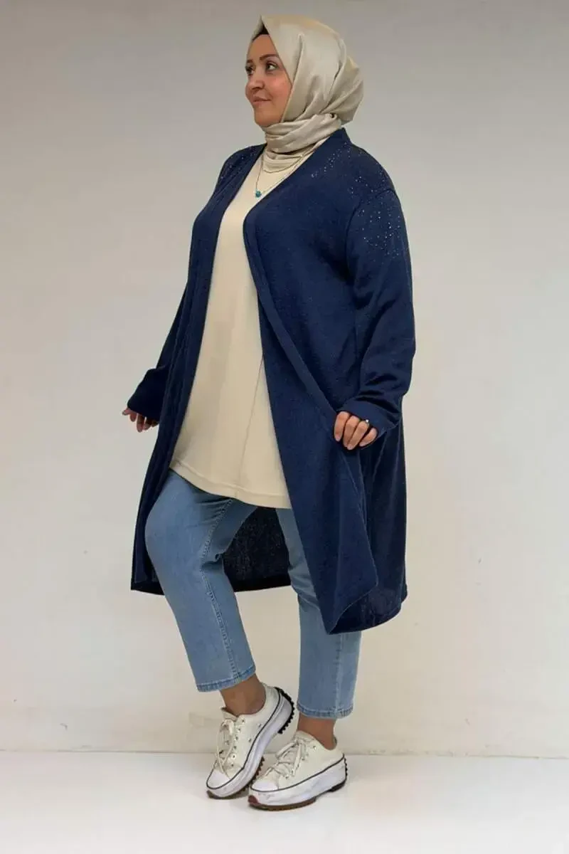 Make a statement with your style in the fall and winter months with the 53047 Plus Size Shoulder Stone Detailed Mir Jacket - Indigo, which combines elegance and comfort. This specially designed jacket offers the comfort and elegant details you are looking for in plus size clothing. The unique texture of Mir fabric provides a comfortable wearing experience all day long thanks to its blend of 92% viscose and 8% lycra. The softness of viscose and the elasticity of lycra help the jacket fit you perfectly, while not restricting your freedom of movement.The noble stance of the Indigo color easily adapts to any combination, making it a candidate to be an indispensable part of your wardrobe. The stone details on the shoulder add a sophisticated touch to the jacket, allowing you to create a striking style. This jacket, which you can use to highlight your elegance in both daily use and special occasions, allows you to make a difference in any environment.The jacket is 3XL size and is designed to reveal the body lines of plus size women in the most beautiful way. Thanks to its comfortable cut, it offers comfortable use throughout the day, while its stylish design dazzles. This jacket, which will keep you warm in cold weather, also completes your style.There may be slight differences in color tone due to concept shots, but the overall appearance and elegance of the jacket does not change. The model's measurements (Waist Width: 88 cm, Chest Width: 103 cm, Hips: 116 cm, Height: 170 cm, Height with Heels: 175 cm) can give you an idea of how the jacket will look on you.Enjoy being both stylish and comfortable with this special design jacket. The timelessness of indigo and the elegance of stone details will take your style to the next level. Dazzle everyone, everywhere, with this jacket that is a candidate to be the most loved piece of your wardrobe.