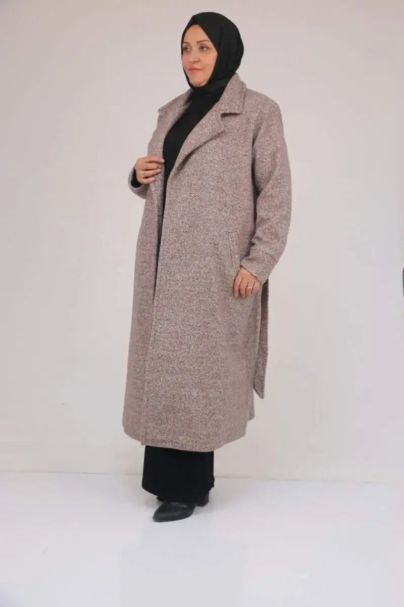 53050 Большое пальто шанель с толстыми манжетами - Коричневый цвет - это дизайн, который сочетает в себе элегантность и комфорт и станет незаменимым в гардеробе женщин больших размеров. Это пальто не только согреет вас в холодную погоду, но и дополнит ваш стиль, а изысканная текстура ткани шанель привлекает внимание. Детали толстых манжет придают пальто современный и изысканный вид, а система застежки на пуговицы обеспечивает простоту использования. Благодаря удобным карманам вы можете носить с собой необходимые вещи. Подкладка обеспечивает комфортное ношение. Длинный фасон изящно скрывает линии тела и создает элегантный силуэт. Теплый оттенок коричневого легко сочетается с разными нарядами. Это пальто, подходящее для сезонного использования, можно легко носить как в повседневной жизни, так и в особых случаях. Удобный крой не ограничивает свободу движений. Стильный дизайн позволит вам выделиться в любой обстановке. Это пальто, изготовленное из высококачественного материала, долговечно и не деформируется. Благодаря различным вариантам размеров можно найти вариант, подходящий для любого типа фигуры. Это пальто, идеально подходящее как для элегантных, так и для спортивных образов, станет одним из ваших любимых предметов гардероба. Оно согреет вас в холодную погоду, не жертвуя при этом элегантностью. С пальто шанель с толстыми манжетами размера 53050 вы всегда будете чувствовать себя стильно и уверенно.