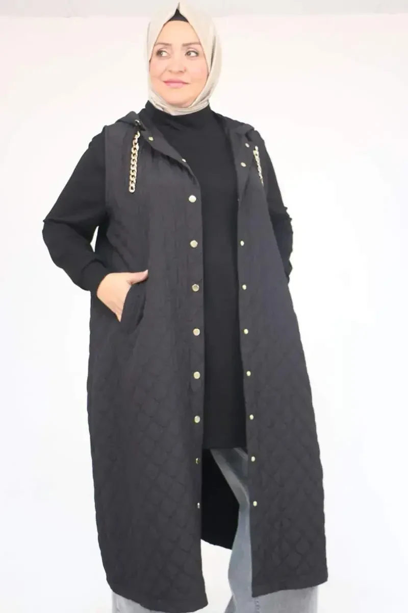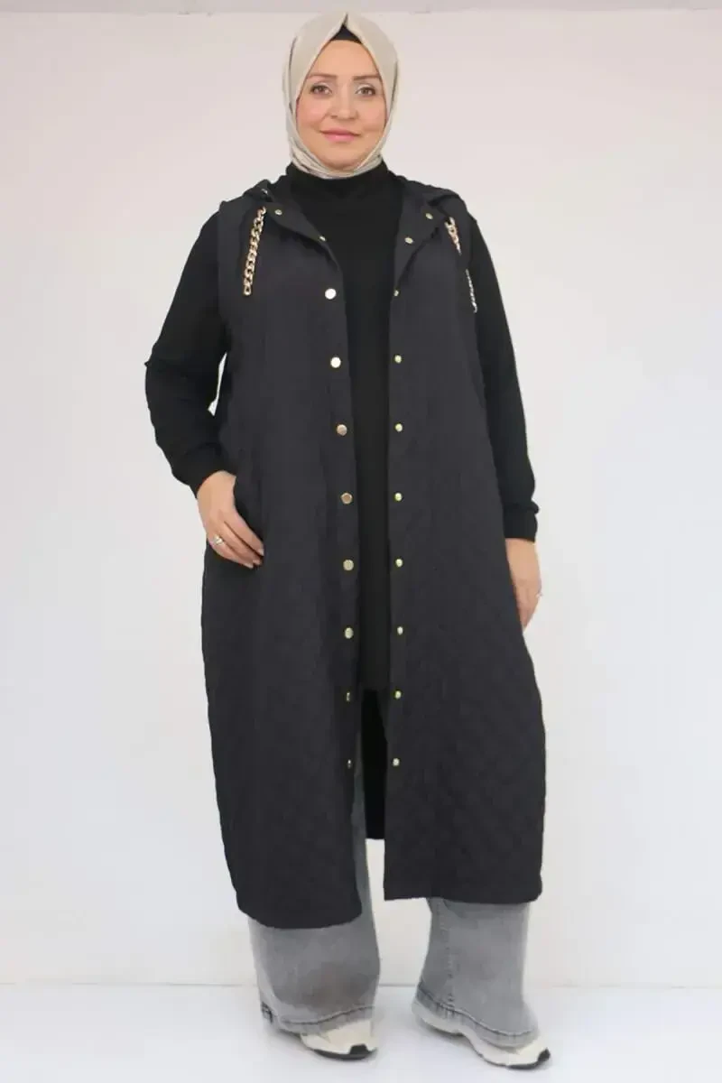 Büyük Beden Zincir Kordonlu Modal-Kapitone Yelek, modern ve rahat bir stil arayan kadınlar için ideal bir seçimdir. Yeleğin modal kumaşı, cildinize yumuşak bir dokunuş sağlarken, nefes alabilen yapısı sayesinde gün boyu konforlu bir kullanım sunar. Kapitone deseni, yeleğe sofistike bir görünüm kazandırırken, zincir kordon detayı ise şıklığı ön plana çıkarır. Büyük beden kesimi, vücut hatlarınızı nazikçe saran rahat bir siluet oluşturur. Bu yeleği, tişörtler, bluzlar veya kazaklarla kombinleyerek farklı stiller yaratabilirsiniz. Jeanler, taytlar veya eteklerle tamamlayarak hem günlük şıklığınızı koruyabilir, hem de özel davetlerde zarif bir görünüm elde edebilirsiniz. Yeleğin siyah rengi, her türlü kıyafetle kolayca uyum sağlarken, zincir kordon detayı dikkat çekici bir detay olarak öne çıkar. Soğuk havalarda sizi sıcak tutarken, şıklığınızdan ödün vermenizi engeller. Büyük Beden Zincir Kordonlu Modal-Kapitone Yelek, gardırobunuzun en çok kullanılan parçalarından biri olacak. Hem rahatlığı hem de şıklığı bir arada sunan bu yelek, her kadının sahip olması gereken bir parçadır. Kendi tarzınızı yansıtmak ve her ortamda dikkat çekmek için bu yeleği tercih edebilirsiniz. Günlük kullanımda spor bir şıklık yakalamak için sneaker'larla, özel davetlerde ise topuklu ayakkabılarla kombinleyebilirsiniz. Aksesuarlarınızla da uyum sağlayarak farklı tarzlar yaratmanız mümkün. Bu yelek, sadece bir giysi değil, aynı zamanda tarzınızı ifade etme biçimidir. Kendinizi özel hissetmek ve şıklığınızı ön plana çıkarmak için Büyük Beden Zincir Kordonlu Modal-Kapitone Yelek tam size göre.