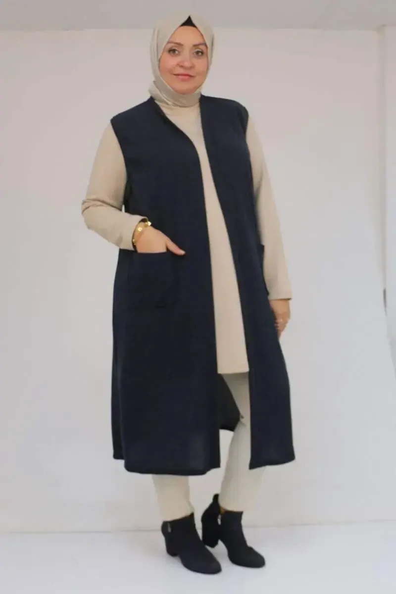 54012 Жилет-накидка Mir с карманами большого размера - темно-синий - это удобный и практичный вариант, который дополнит ваш стиль осенью и зимой. Этот жилет, специально разработанный для женщин, ищущих одежду больших размеров, можно с легкостью носить как в повседневной жизни, так и в особых случаях. Темно-синий цвет легко сочетается с любым нарядом, а мягкое прикосновение ткани Mir подарит вам приятное ощущение в течение всего дня.Одной из самых заметных особенностей жилета является то, что его легко надевать и снимать. Он идеально подходит для женщин, которые хотят сэкономить время и любят практичную одежду. Карманный дизайн позволяет легко носить с собой такие мелкие предметы, как телефон, ключи. Таким образом, вы будете выглядеть стильно и удовлетворять свои потребности практичным способом.Благодаря составу из 92% вискозы и 8% лайкры жилет удобно сидит по фигуре и обеспечивает свободу движений. Натуральная структура вискозы помогает коже дышать, а лайкра обеспечивает эластичность и комфорт в течение всего дня. Качество ткани Mir гарантирует долговечность жилета и отсутствие деформации.Этот жилет, отражающий благородство и элегантность темно-синего цвета, может адаптироваться к разным стилям. Сочетайте его с джинсами и футболкой для спортивного образа или дополните блузкой и юбкой для более элегантного стиля. В любом случае он поможет вам отразить свой стиль.Из-за концептуальных съемок могут быть небольшие различия в оттенках цвета, но это не влияет на общий вид и элегантность жилета. Жилет-накидка Mir с карманами большого размера 54012 - темно-синий - станет незаменимой частью вашего гардероба для женщин, которые ищут комфорт и элегантность в одежде больших размеров. Выбрав этот жилет, вы сможете продемонстрировать свой стиль и наслаждаться комфортом в течение всего дня. Этот жилет, сочетающий в себе качество и элегантность в одежде больших размеров, станет для вас отличным выбором.