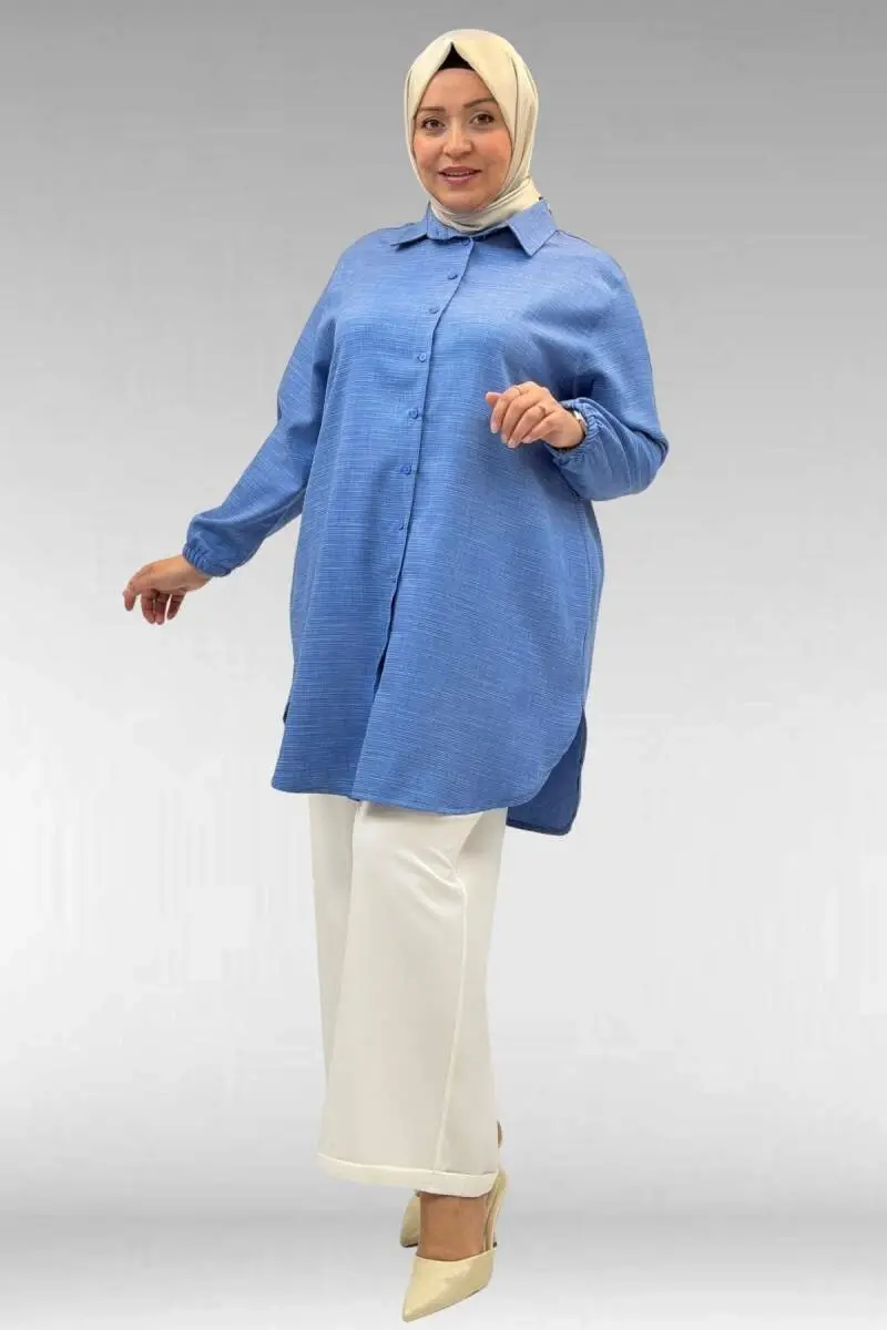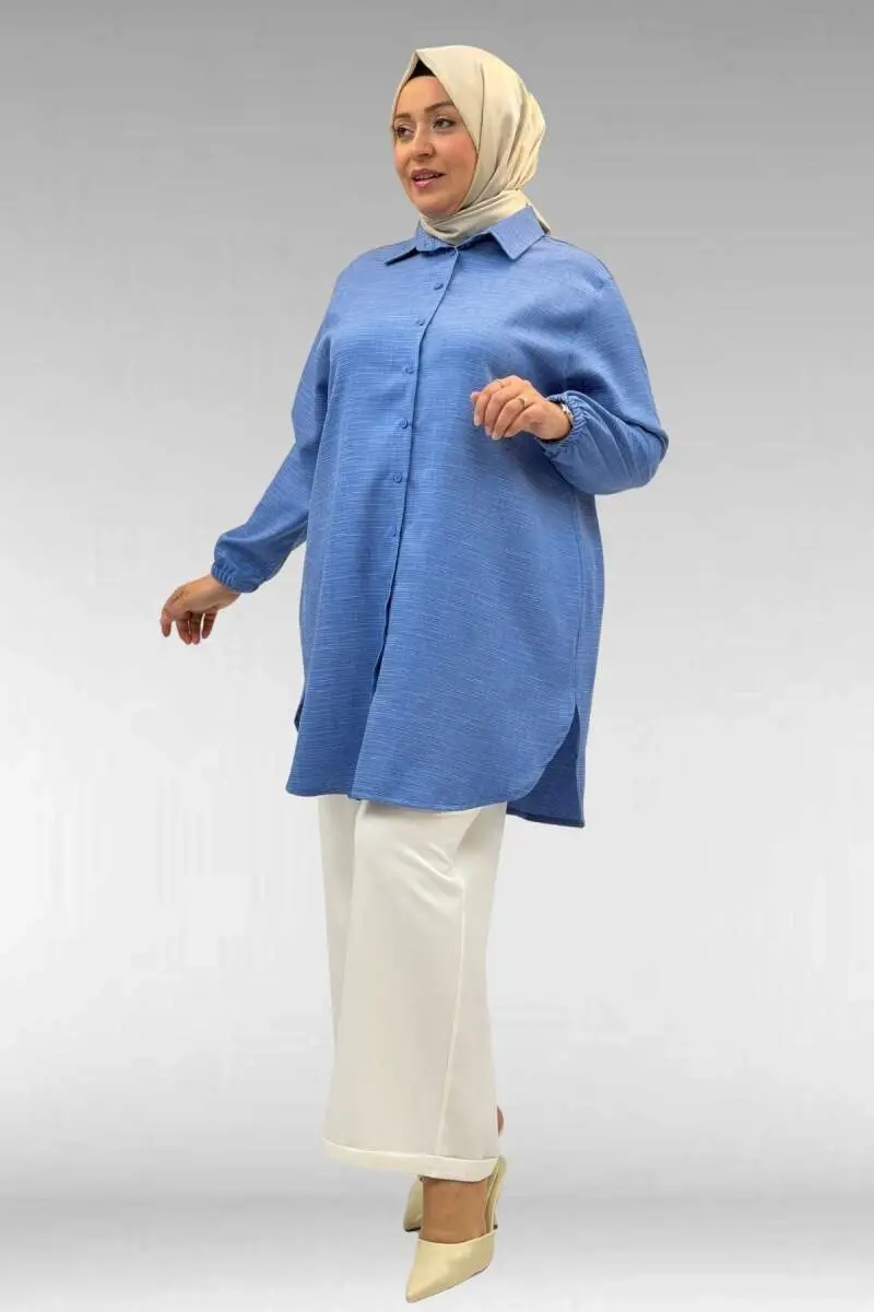 58068 Büyük Beden Erkek Yakalı Gömlek - İndigo Kırçıllı