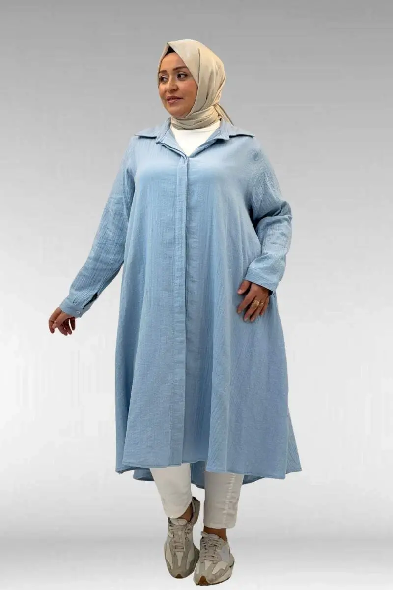 58093-1 Büyük Beden Mevlana Kesim Müslin Gömlek - Bebe Mavi