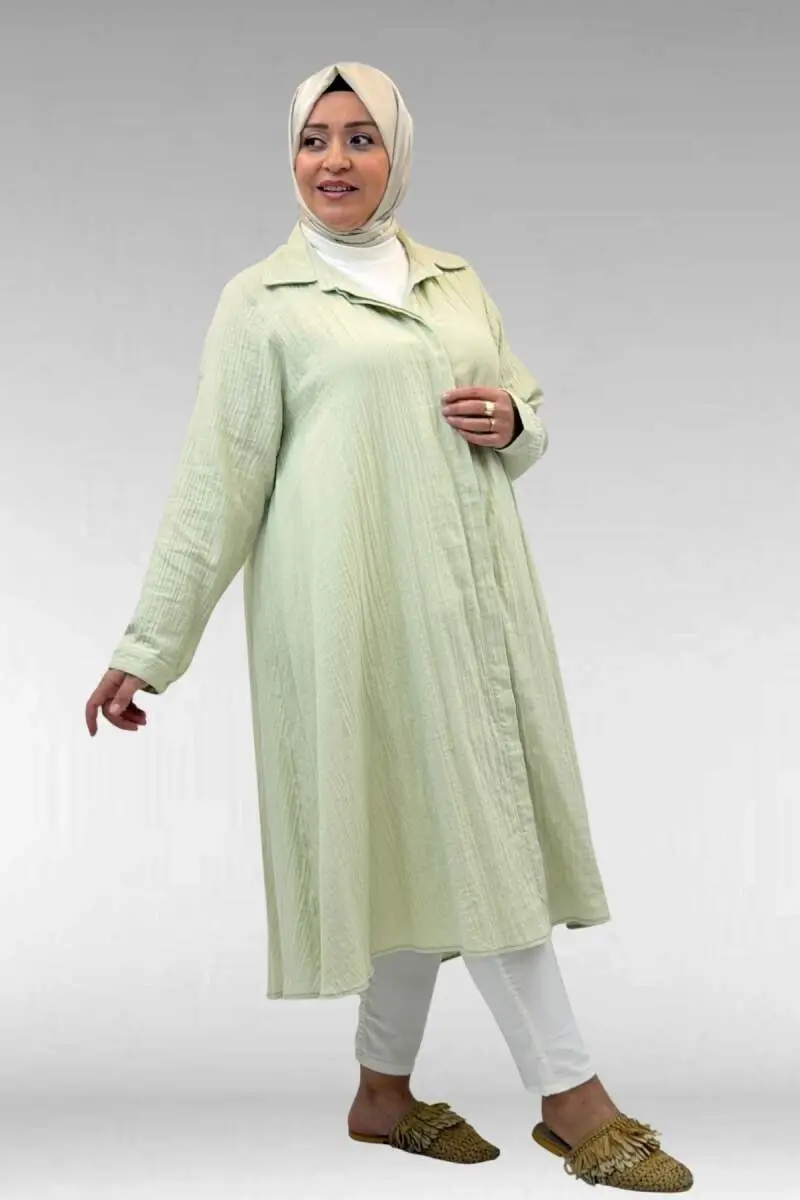 58093-1 Büyük Beden Mevlana Kesim Müslin Gömlek - Su Yeşili