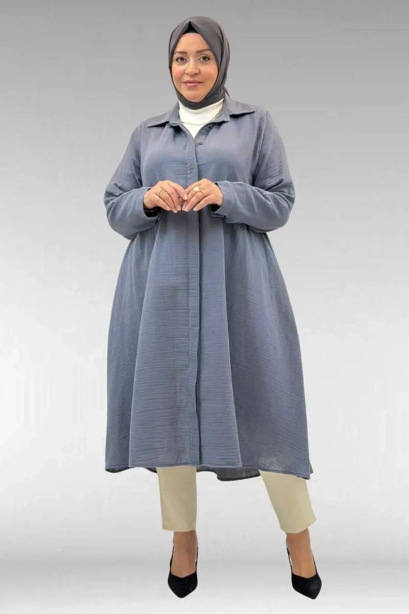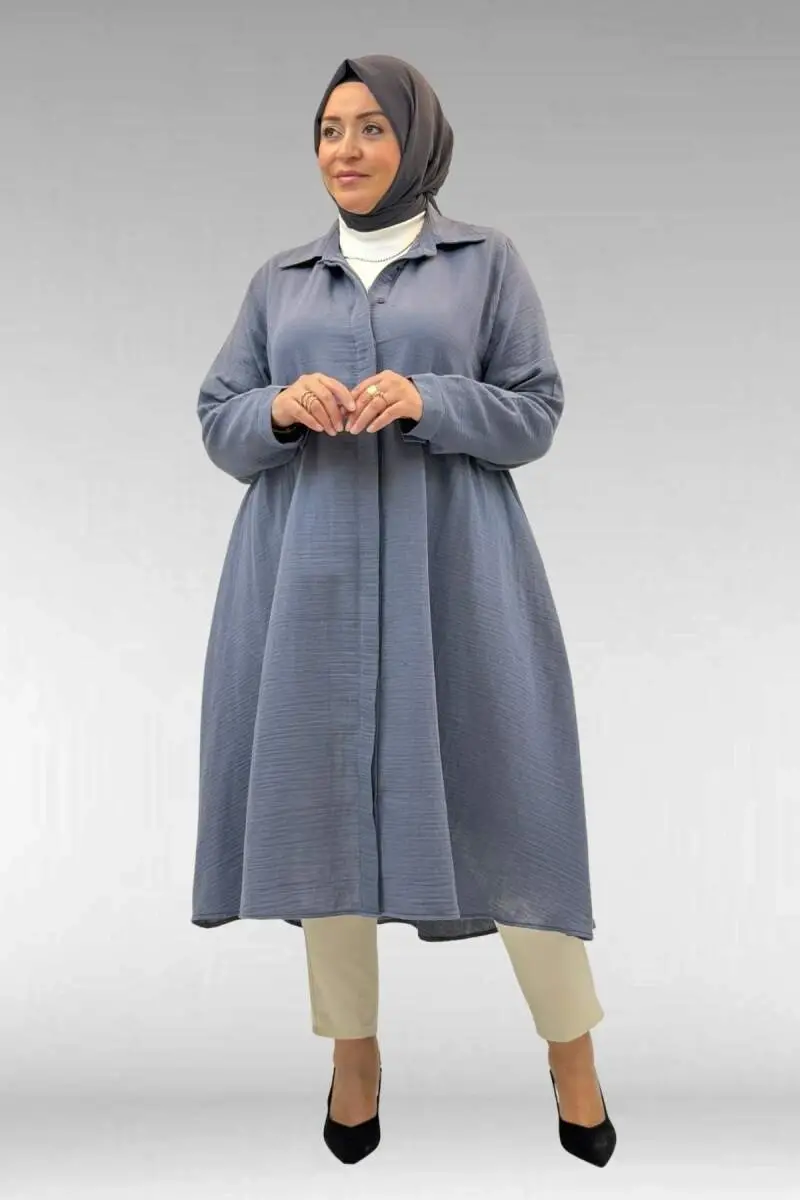 58093 Büyük Beden Mevlana Kesim Müslin Gömlek - Antrasit