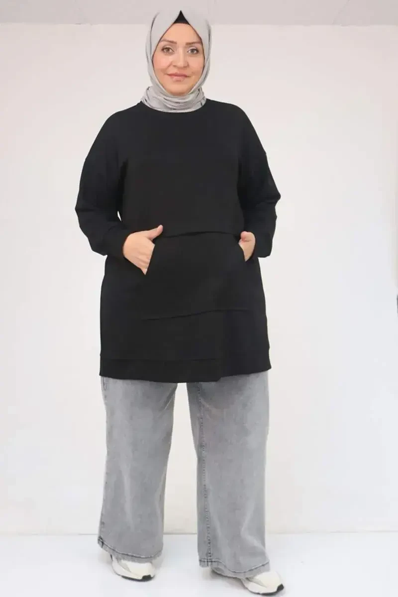 If you don't want to sacrifice your comfort in today's fast-paced life and want to maintain your elegance, the 58133 Plus Size Kangaroo Pocket Modal Tunic is for you! This tunic creates a feeling of not being on you all day long thanks to the unique softness and breathable structure of the modal fabric, while its modern cut and stylish details allow you to reflect your style in any environment. This tunic, combined with the timeless elegance of black, is a candidate to be one of the indispensable pieces of your wardrobe. The natural shine of the modal fabric gives the tunic an elegant look and gently touches your skin. Thanks to its non-sweating structure, it maintains your comfort even in hot weather or during intense activities. The kangaroo pocket detail on the tunic stands out as a stylish detail and allows you to easily carry your phone, keys or other small items. In addition to daily use, you can combine it with different accessories for a stylish look on your special occasions. This tunic, which adapts to every body type thanks to its plus size design, wraps your body lines perfectly and makes you feel more confident. Thanks to its comfortable cut, it does not restrict your freedom of movement and offers a comfortable experience throughout the day. You can create different styles by combining it with jeans, leggings or skirts. 58133 Plus Size Kangaroo Pocket Modal Tunic is not just a garment, but also a lifestyle. It makes you feel good and look stylish at all times. Make a difference in every moment with this tunic that is a must-have for your wardrobe! The black color of the tunic creates a perfect base for all kinds of combinations. You can achieve an energetic look by using accessories in vibrant colors, or you can choose silver or gold tones for a simpler and more minimalist style. You are also free in choosing shoes; You can create a comfortable combination with sneakers, or you can achieve a more stylish look with high heels. 58133 Plus Size Kangaroo Pocket Modal Tunic is a versatile piece that can adapt to every style and every environment. It is important to pay attention to the washing instructions to ensure the product has a long life. The tunic should be washed at 30 degrees with similar colors and ironed at low temperature. You can protect the color and texture of the fabric by avoiding the use of bleach. With proper care, you can ensure that your tunic stays as new as the first day and you can enjoy using it for many years. 58133 Plus Size Kangaroo Pocket Modal Tunic can be a great gift option for both you and your loved ones. You can make your loved ones happy with this tunic that offers elegance and comfort together.