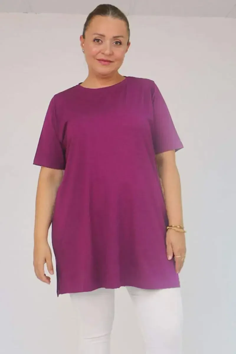 Футболка трикотажная большого размера с бейкой на горловине 58507 - фиолетовая станет незаменимой вещью в вашем гардеробе в теплые летние и весенние дни. Эта футболка, сочетающая в себе комфорт и элегантность, является идеальным выбором для женщин, которые ищут комфорт в одежде больших размеров. Яркий и энергичный оттенок фиолетового добавит изюминку в каждый ваш образ, а деталь с бейкой на горловине завершит ваш элегантный образ.Ткань футболки состоит из 92% вискозы и 8% лайкры, что придает ей текстуру трикотажа-вискозы. Благодаря мягкой и легкой структуре вискозы вы будете чувствовать себя комфортно в течение всего дня, а лайкра придает ткани эластичность, не ограничивая вашу свободу движений. Таким образом, вы сможете не только выглядеть стильно, но и с легкостью выполнять все свои повседневные дела.Эта футболка размера 3XL идеально подчеркивает фигуру женщин больших размеров и отлично сидит по фигуре. Благодаря своей драпированной структуре она не стесняет тело, а наоборот, обеспечивает удобную посадку. Эта футболка, которую вы можете выбрать как для повседневных образов, так и для более особых случаев, станет одной из самых используемых вещей в вашем гардеробе.Фиолетовая футболка легко сочетается с низом разных цветов. Вы можете создать спортивный образ с джинсами или более элегантный образ с юбкой. Вы можете дополнить свой образ выбором аксессуаров и привлекать внимание в любой обстановке.Дышащая структура трикотажной ткани сводит к минимуму проблему потоотделения в жаркую погоду и позволяет вам оставаться свежей в течение всего дня. Благодаря своей легко гладящейся особенности она экономит ваше время и помогает вам всегда выглядеть ухоженно.Футболка трикотажная большого размера с бейкой на горловине 58507 - фиолетовая - идеальный выбор для женщин больших размеров, которые ищут сочетание элегантности и комфорта. Эта футболка, которую можно легко сочетать с другими вещами в вашем гардеробе, поможет вам сохранить свой стильный вид в любое время года. Наслаждайтесь комфортом и модой с этой эксклюзивной футболкой.