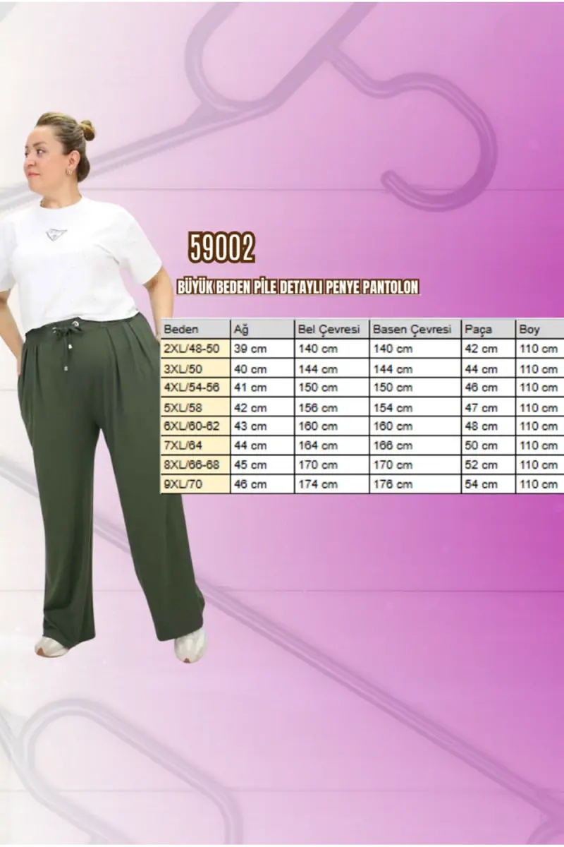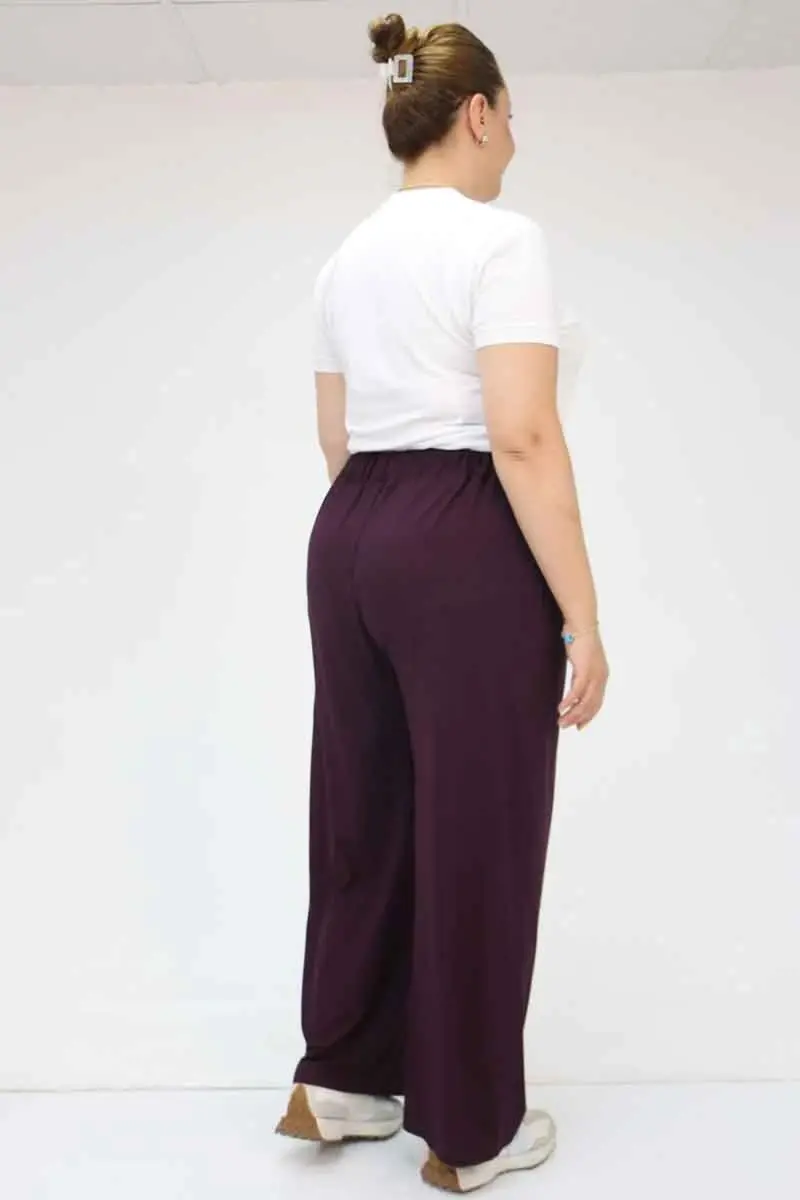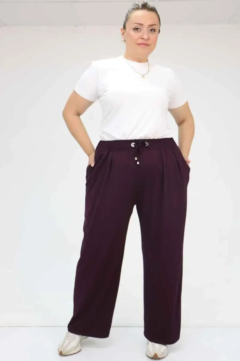 59002 Büyük Beden Pile Detaylı Penye Pantolon - Mor