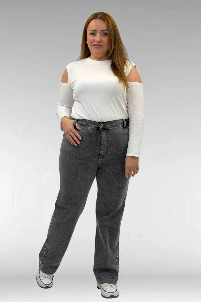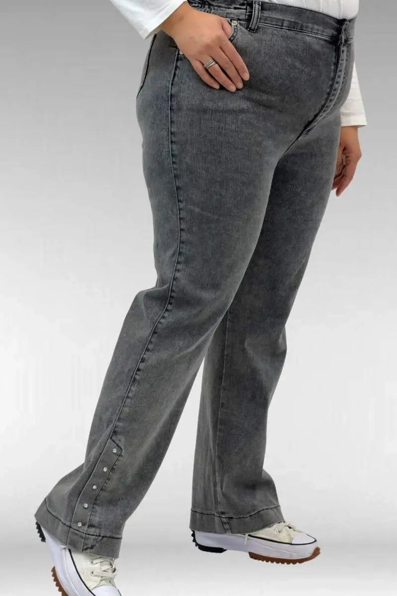 59024 Büyük Beden Paçasında Taş Detaylı Kot Pantolon - Antrasit
