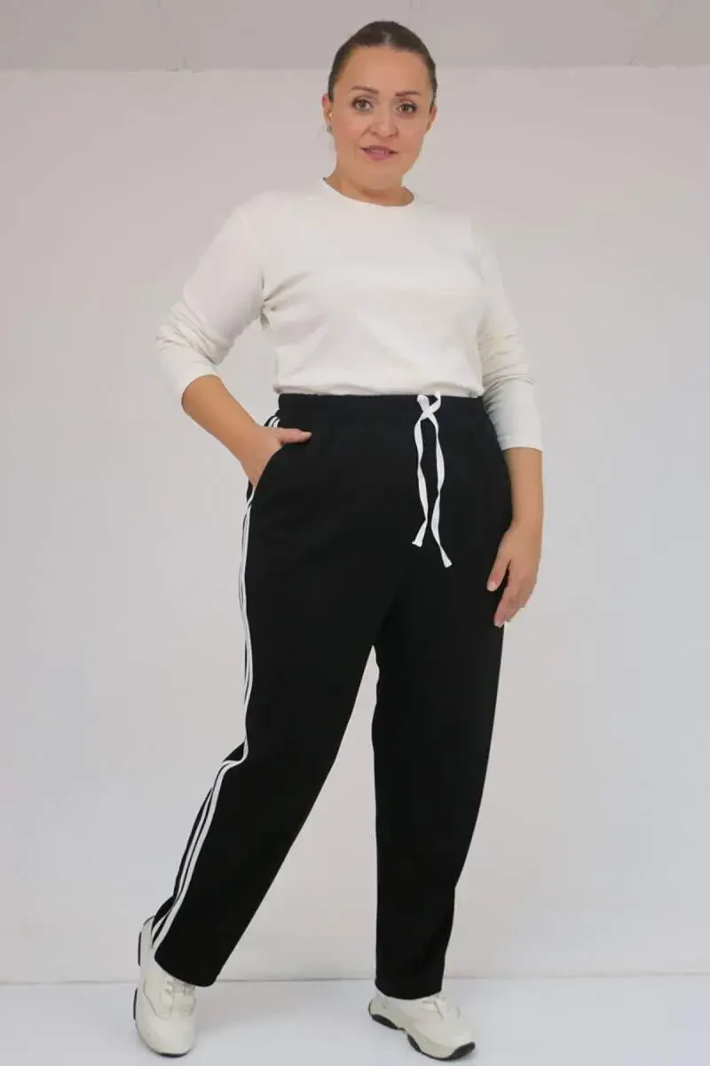 Experience comfort and style with the 59505 Plus Size High Waist Striped Modal Sweatpants. These sweatpants are specially designed for plus-size women who value comfort. The high-waisted cut slims the body for a more fitted look, while the side stripe details add a sporty touch. The soft texture of the modal fabric provides a comfortable wearing experience all day long, while the 100% polyester content ensures long-lasting use. Whether you are relaxing at home, exercising, or easily incorporating them into your daily outfits, these sweatpants will be an indispensable part of your wardrobe. The elegance of the black color easily adapts to any combination, while the stripe details help you highlight your style. Thanks to its four-season wearability, these sweatpants, which you can use at any time of the year, are an ideal choice for those who want to combine comfort and elegance. Considering the slight color tone differences that may occur due to concept shots, you can place your order with confidence. You will always feel good with these sweatpants that offer comfort and elegance together in plus size clothing. Its flexible structure does not restrict your freedom of movement and offers a comfortable experience throughout the day. You can create different styles by combining it with both sneakers and everyday shoes. Be sure to try these sweatpants to enjoy comfort without sacrificing your elegance.