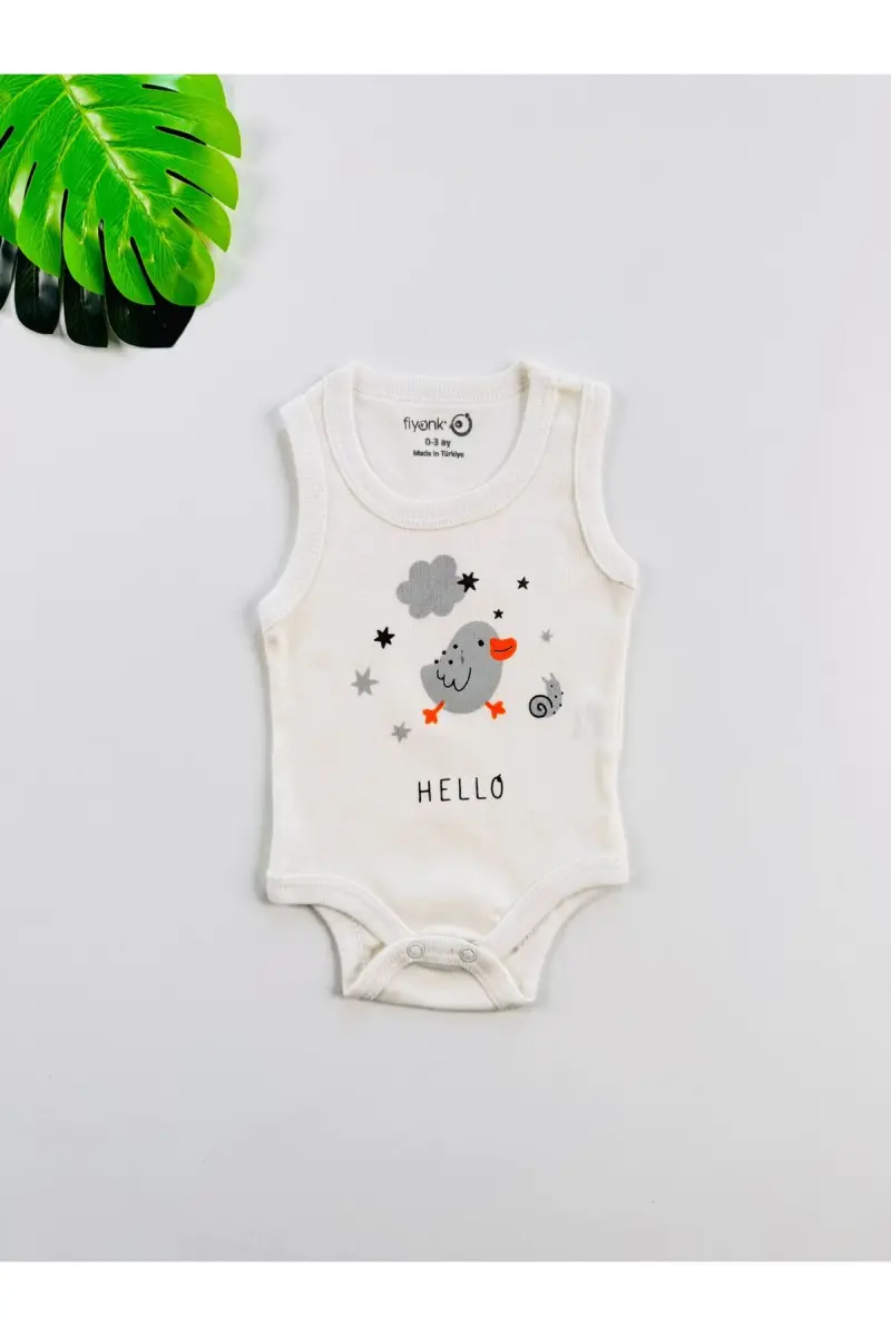 5'li Hello Kuş Desenli Pamuklu Bebek Atlet Body Zıbın-Beyaz