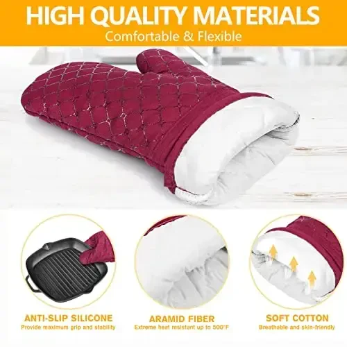 pech qo'lqopi, ushlagich, oshxona sochiqlari, issiqlikka chidamli, paxta, silikon, sirpanmaydigan, oshxona, pishirish, pech
