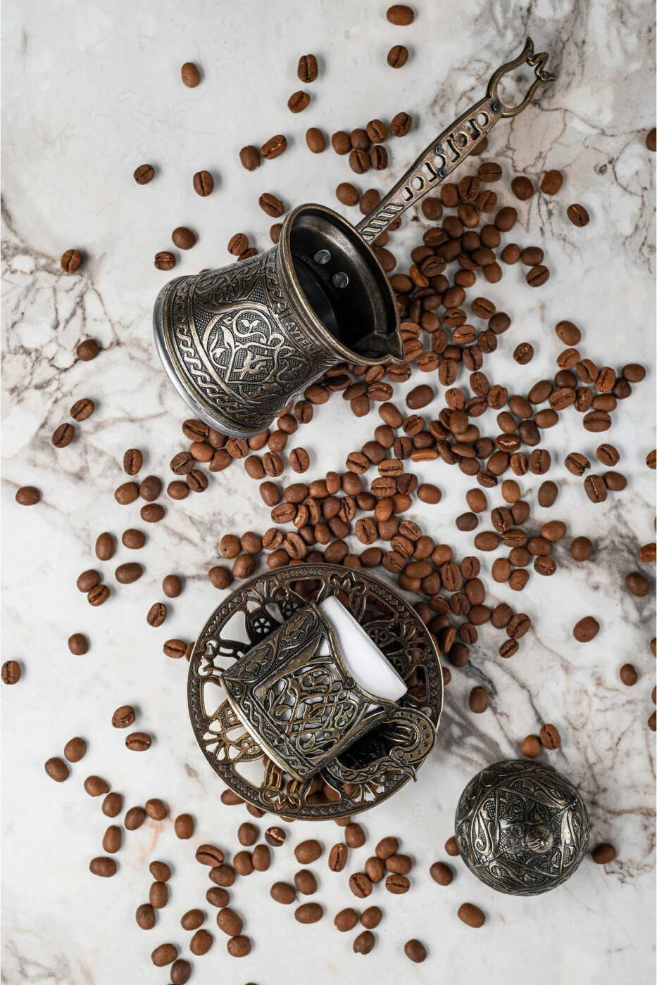 Идеальный выбор для тех, кто ищет стильную и долговечную джезву со всем, что необходимо для идеального приготовления кофе! Наша чугунная джезва для 6 человек, совместимая с нержавеющей сталью, сочетает в себе традиционный турецкий метод приготовления кофе с современным акцентом.