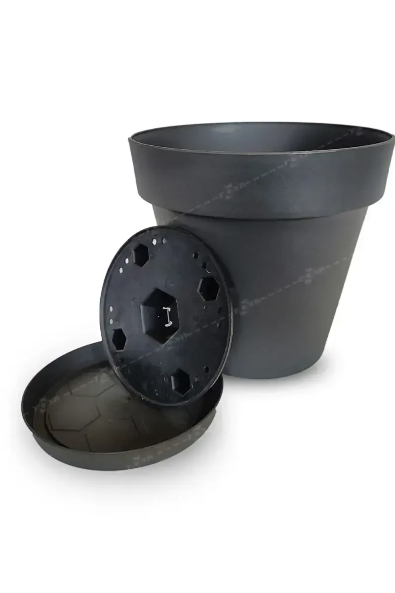 Meet the 6 Liter Ø24x22cm Matte Anthracite Gray Color Saucered Grid Decorative Plastic Pot Yalı No4-6Lt Anthracite, which offers an ideal living space for your plants with its 6 Liter volume and stands out with its stylish design and useful features. This pot will add a modern touch to the decoration of your home or garden, as well as displaying your plants. The anthracite gray color easily adapts to all kinds of environments, while its matte surface offers a sophisticated look. The Yalı No4 design attracts attention with its minimalist lines and elegant details, highlighting the natural beauty of your plants. Made of high quality plastic material, this pot is long-lasting and durable. Thanks to its resistance to weather conditions, impacts and UV rays, it can be used safely indoors and outdoors. The grid system at the bottom of the pot helps the roots of the plants to breathe, contributing to their healthy development. It also helps to drain excess water, preventing root rot. This feature allows your plants to stay alive and healthy for longer. Its 6-liter volume is suitable for various plant species. It is an ideal size for growing flowers, herbs, vegetables or small trees. The Ø24x22cm dimensions of the pot do not take up much space and provide enough space for the plants to grow comfortably. The accompanying plate prevents water flowing from the pot from spreading around during watering or rain, ensuring a clean and tidy environment. The plate also maintains the balance of the pot, reducing the risk of tipping over. The 6 Liter Ø24x22cm Matte Anthracite Gray Color Saucered Grid Decorative Plastic Pot Yalı No4-6Lt Anthracite is not just a pot, but also a healthy living space for your plants and a stylish decoration element for your home. With its practical use, durable structure and aesthetic design, it will take your plant growing experience to the next level. Whether you choose it for your own plants or as a gift for your loved ones, this pot will always be the right choice. Value your plants, give them the care they deserve and beautify your living spaces with this stylish pot.