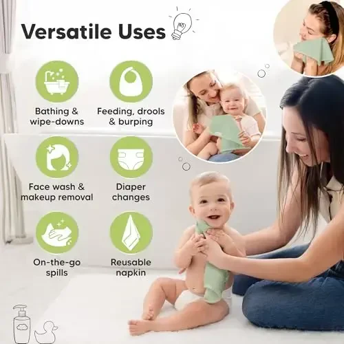 • Versatile Use (Bath Towel, Burp Cloth, Washcloth)