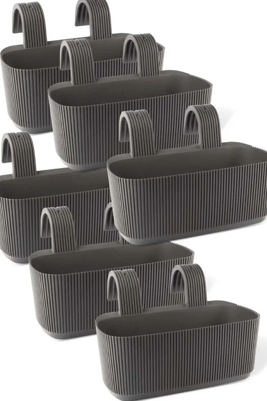 Enjoy your plants with the 6 Pack Karasu Plastic Pera Hanging Balcony Planters!