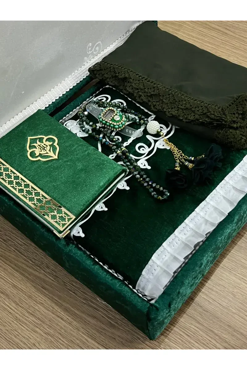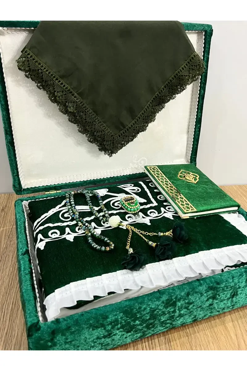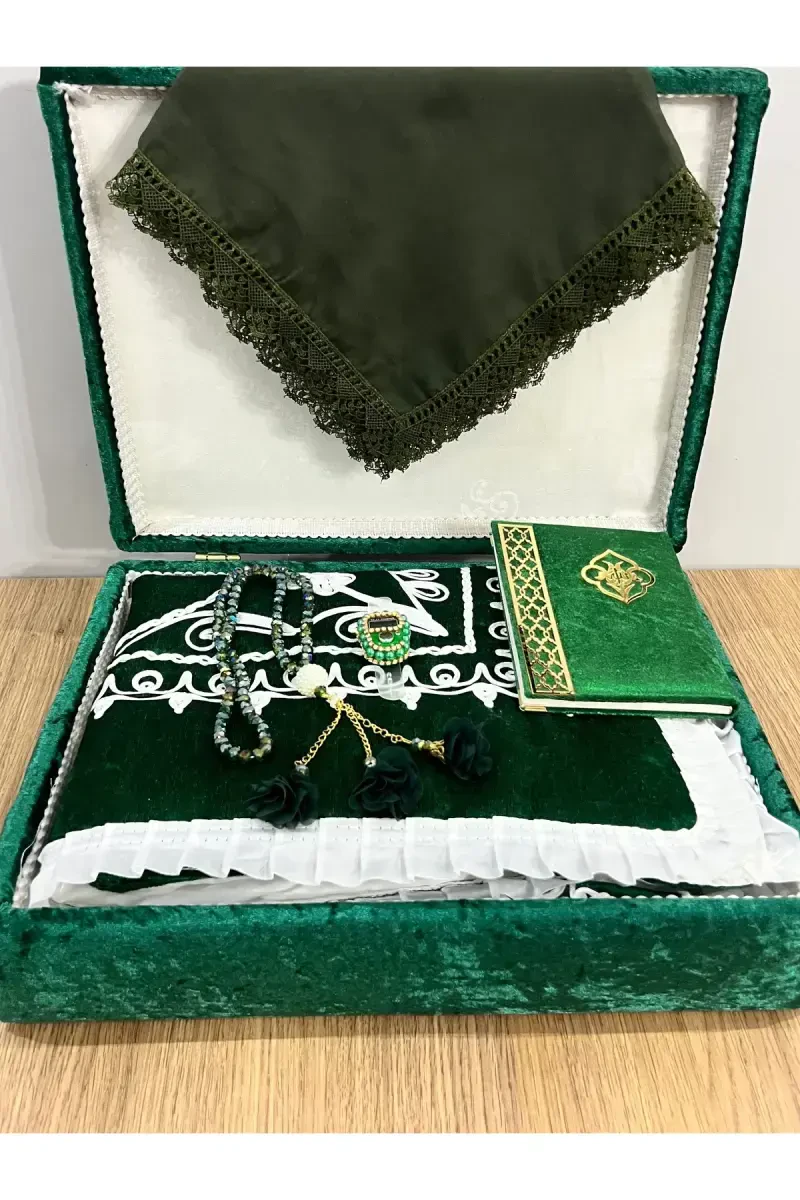 The 6-Piece Velvet Prayer Rug Set offered by AYHANHOME will be indispensable for your dowry preparations and special occasions. This stylish and useful set, specially designed for bride and groom bundles, combines elegance and comfort. This special product, offered at a campaign price, is available in limited stock.This unique prayer rug set you are viewing may also be offered by different sellers. On this platform, where there are multiple sellers, factors such as the price, rating, delivery status, promotions, shipping options, fast delivery option, stock information, and categories determined by each seller are effective in the product ranking. This way, you can easily find the option that suits you best.You can order a maximum of 20 of this product. Trendyol reserves the right to cancel orders exceeding 20 units. Different limits apply for corporate orders, and you can contact us for detailed information. If you do not like the product, you can take advantage of the free return option within 15 days.This prayer rug set, which offers a luxurious look with its velvet texture, also stands out with its practical usage features. This product, which has Type 0 washing instructions that offer easy maintenance, saves you time. Thanks to its cotton base structure, it offers a comfortable worship experience and guarantees that your feet will be comfortable even in long-term use. The fringeless (overlock) design creates a modern and stylish look while providing ease of use. The 100% non-polyester cotton material that gives a natural touch provides a skin-friendly experience. The 6-piece prayer rug set, designed as a bridal groom set with a dowry chest, accompanies you on your special days by offering both elegance and functionality. This elegant and useful set also offers a meaningful gift option for your loved ones. This prayer rug set, designed with the soothing tone of green, will make your worship more enjoyable.