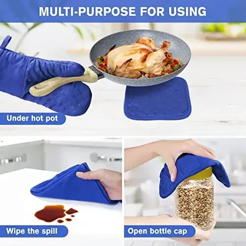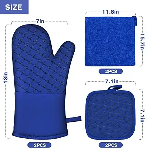 Представляем вашему вниманию набор из 6 предметов: прихватка для духовки и держатель, разработанные для того, чтобы сделать время, проведенное на кухне, более безопасным и приятным. Этот набор объединяет в себе все необходимое для кухни, обеспечивая превосходную защиту и простоту использования. В комплект входят 2 прихватки для духовки (7x13 дюймов), 2 держателя (7x7 дюймов) и 2 кухонных полотенца (11,8x11,8 дюймов). Идеально подходит для безопасного удержания горячих кастрюль, сковородок, тарелок, мисок и противней.Эти прихватки и держатели для духовки изготовлены по специальной технологии, обеспечивающей термостойкость до 500℉/260℃. Утолщенная конструкция длиной 13 дюймов эффективно защищает руки от ожогов. Это идеальный подарок для ваших близких, особенно на такие праздники, как День Благодарения и Рождество. Это лучший выбор для женщин, мужчин, пекарей и любителей готовить.Мягкая стеганая хлопковая подкладка внутри прихваток обеспечивает превосходный комфорт во время использования. Эти перчатки подходят как для правой, так и для левой руки, что облегчает вашу работу на кухне. Кроме того, их очень удобно чистить благодаря возможности машинной стирки и сушки.Эти прихватки и держатели для духовки, изготовленные из прочных и безопасных материалов, позволяют надежно удерживать кухонную утварь благодаря нескользящему силикону на поверхности. Это сводит к минимуму риск скольжения при переноске кастрюль или горячих тарелок. Благодаря подвесным петлям их можно легко повесить, когда они не используются, что помогает вашей кухне выглядеть более организованной.Сделайте время, проведенное на кухне, более безопасным, комфортным и приятным с помощью набора из 6 предметов: прихватка для духовки и держатель. Этот набор станет незаменимой частью вашей кухни благодаря как практичному использованию, так и стильному дизайну. Больше не нужно беспокоиться о работе с горячими кастрюлями, с этим набором ваши руки будут в безопасности. Это идеальный выбор для профессионального прикосновения на кухне.