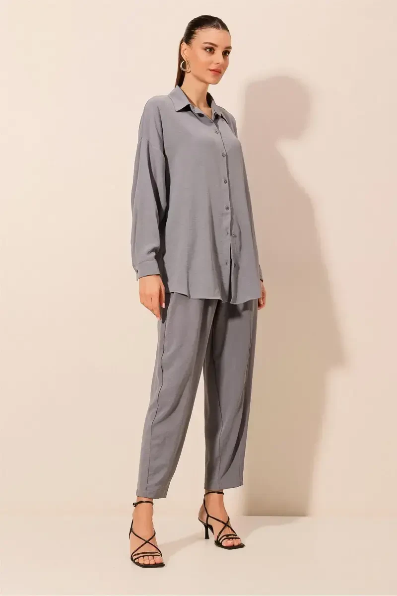The 6593 Oversize Two-Piece Set - Grey, which offers oversize comfort and elegance together, is a candidate to be an indispensable part of your wardrobe. This set, which you can easily prefer for special events as well as daily use, attracts attention with its modern design and comfortable fabric. Whether you combine it with sneakers or stylish heels, it will always allow you to reflect your style.Product DescriptionThe 6593 Oversize Two-Piece Set - Grey is a comfortable and stylish option that reflects the style of the modern woman. This set prioritizes your comfort throughout the day while offering a trendy look. Thanks to its oversize cut, this set, which does not fit the body and provides freedom of movement, is ideal for both daily use and special moments. The nobility and simplicity of the gray color allows you to create different styles by adapting to all kinds of combinations. High-quality fabric offers long-lasting use and easy maintenance. The top and bottom pieces of the set can also be used separately, so you can create endless combinations with other pieces in your wardrobe. You can choose this set whether you want to spend a comfortable day at home, meet with your friends, or attend a stylish dinner. The 6593 Oversize Two-Piece Set - Grey is a timeless piece that will maintain its trend every season. With this set that combines elegance and comfort, you will always feel good. This set, which is the choice of practical and stylish women who keep up with today's fast-paced life, is a candidate to be one of the most popular pieces in your wardrobe. Discover the 6593 Oversize Two-Piece Set - Grey now to pamper yourself and take your style to the next level. Designed for women who closely follow fashion and do not want to compromise on comfort, this set will bring a new breath to your style. Enjoy being both stylish and comfortable. Whether you get a sporty look or create a more classic style, this set will always accompany you. Attract attention in every environment with the 6593 Oversize Two-Piece Set - Grey.Product Features* Oversize fit* Comfortable and stylish design* Suitable for daily use* High-quality fabric* Easy maintenance* Gray color* Both top and bottom pieces can be used separately* Suitable for different combinations* Trendy look* Provides freedom of movementAdditional InformationThe product is available in different size options. Please check the size chart and choose the size that suits you best. To ensure the product's long life, follow the washing instructions on the label. There may be slight tone differences in colors due to screen differences.