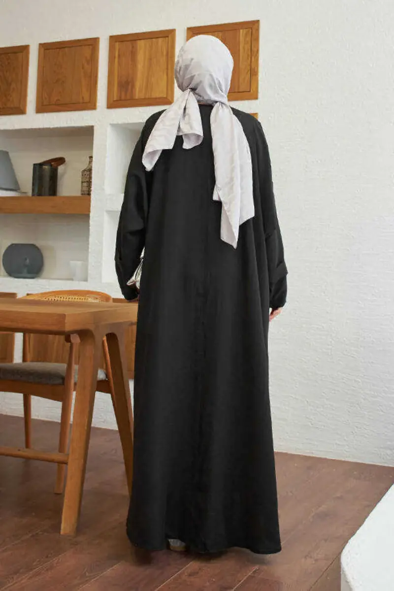 Qora rangi bilan har qanday uslubga mos keladigan abaya, maxsus kunlaringizda sizning oqlanganligingizni to'ldiradi. Qulay kesimi tufayli harakat erkinligini taqdim etadigan abaya, ham kundalik hayotda, ham maxsus takliflarga borishda afzal ko'rilishi mumkin.