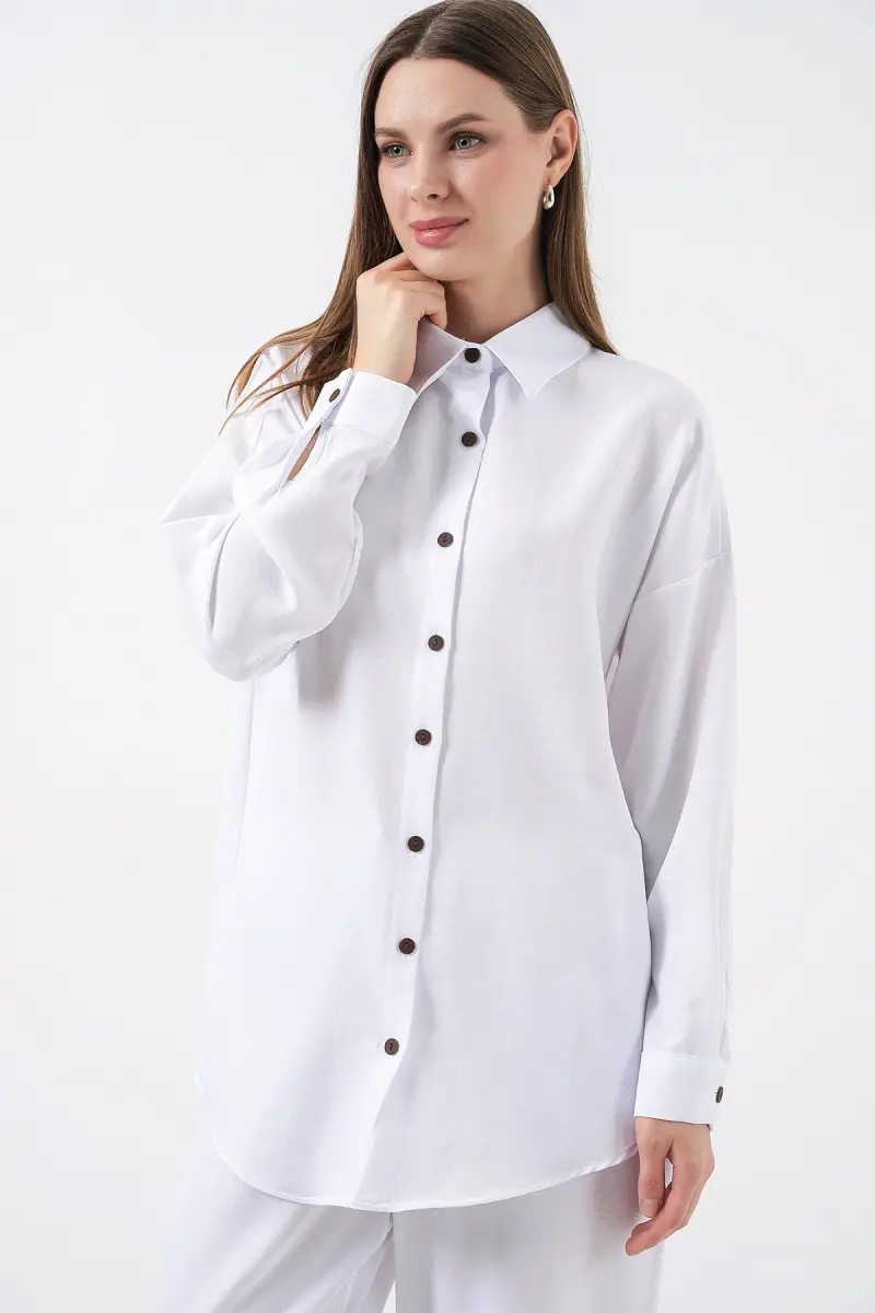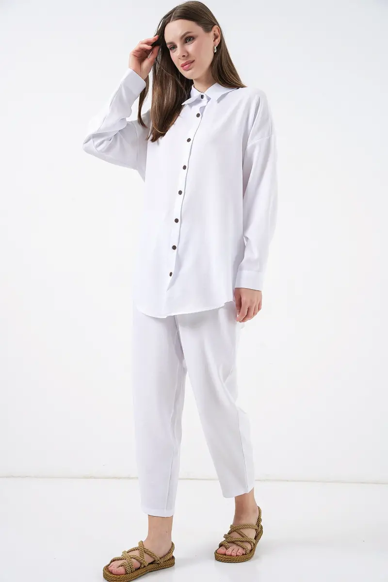 6622 Keten İkili Takım - Beyaz-BEYAZ