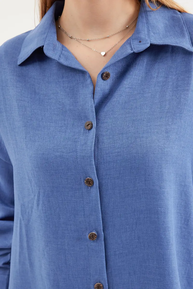 Modeldagi o'lcham: S/36. Mahsulot tarkibi: %100 Zig'ir. Yuvish bo'yicha ko'rsatma: Mashinada 30 darajada yuvish mumkin. Dazmollash: Past haroratda dazmollash mumkin. Rang: D. Indigo-D. Indigo. Mavsum: Bahor/Yoz. Uslub: Kundalik/Zamonaviy.