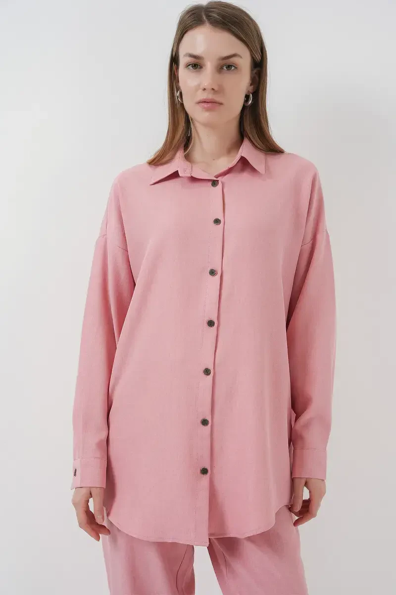 Льняной костюм-двойка 6622 от Bigdart — это специальный дизайн, сочетающий в себе элегантность и комфорт. Этот костюм пудрового цвета, подчеркивающий элегантность, является идеальным выбором как для повседневного использования, так и для особых случаев. Благодаря ткани из смеси льна и вискозы он сохраняет прохладу летом, а также создает естественный и стильный вид.Этот костюм-двойка состоит из верхней и нижней частей. Верхняя часть привлекает внимание своим современным кроем и удобной посадкой, а длина 77 см позволяет создавать различные комбинации. Длина рукава 44 см дополняет ваш стиль, не ограничивая свободу движений. Нижняя часть длиной 97 см легко сочетается как со спортивной, так и с классической обувью.Ткань изделия состоит из 70% вискозы и 30% льна. Эта специальная смесь обеспечивает ткани воздухопроницаемость и долговечность. Мягкая текстура вискозы приятна на ощупь, а натуральная структура льна придает костюму особую атмосферу.Льняной костюм-двойка 6622 подходит для любого типа фигуры благодаря различным вариантам размеров. Размер 38 на манекене может дать вам представление о том, как изделие будет сидеть на вас. Размеры манекена (рост: 176 см, грудь: 90 см, талия: 63 см, бедра: 94 см) могут помочь вам в выборе размера.Чтобы этот стильный костюм прослужил долго, важно соблюдать инструкции по стирке. Рекомендуется стирать изделия с ручной отделкой и бисером в деликатном режиме, вывернув их наизнанку, и проявлять осторожность, чтобы предотвратить выцветание изделий с принтами. Стирка при температуре не выше 30°C и использование подходящего моющего средства для цветных изделий помогут сохранить цвет и текстуру изделия. Кроме того, следует избегать стирки джинсовой ткани и темных изделий вместе с другими изделиями светлых тонов. Сушка одежды вдали от прямых солнечных лучей предотвратит выцветание цвета.Льняной костюм-двойка 6622 - Пудра - станет одним из незаменимых предметов вашего гардероба. Это идеальный выбор для женщин, которые хотят быть одновременно стильными и комфортными. Вы можете легко заказать его через Trendyol и приобрести этот уникальный костюм.