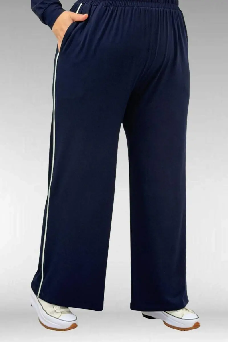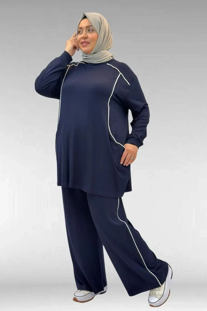 67012 Büyük Beden Biye Detaylı Penye Pantolonlu Takım - Lacivert