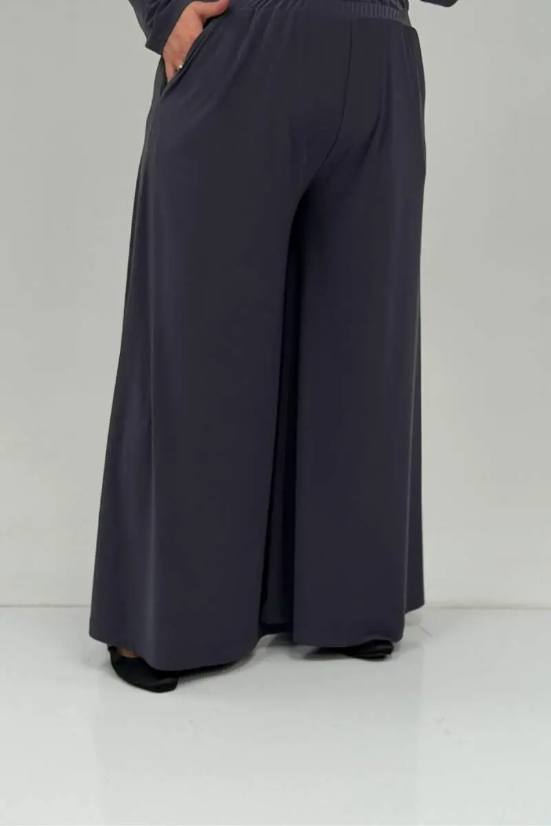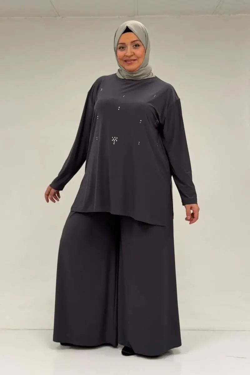 67030 Büyük Beden Yanı Yırtmaçlı Sandy Pantolonlu Takım - Antrasit