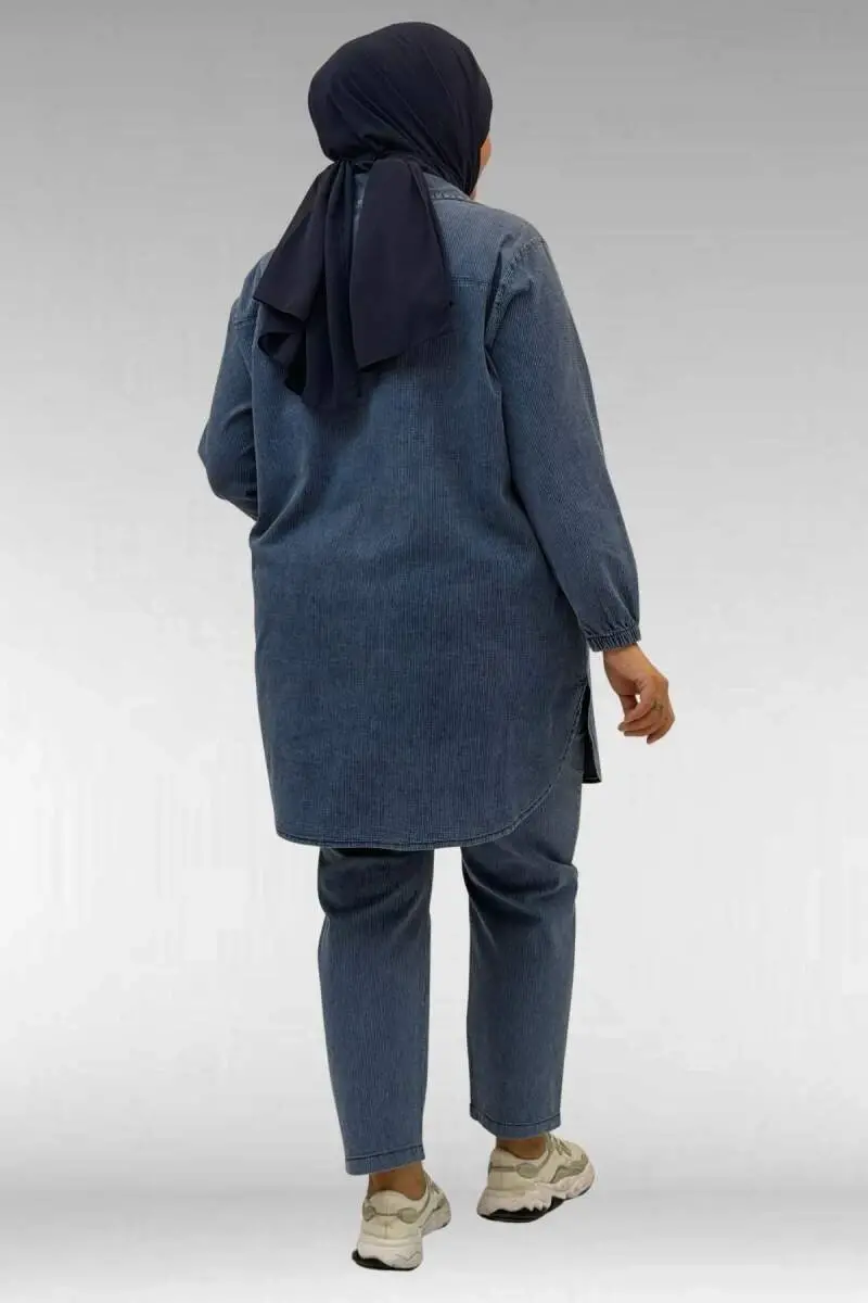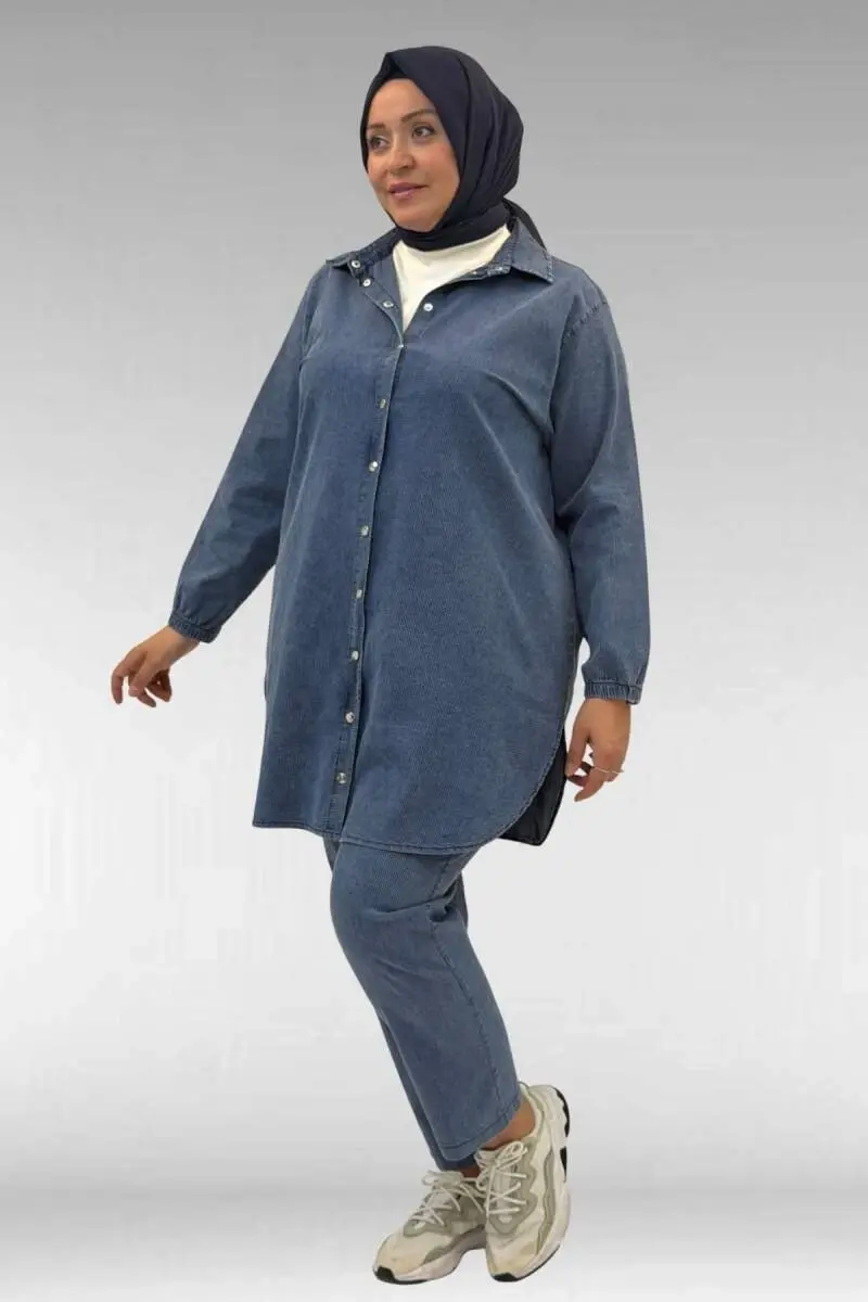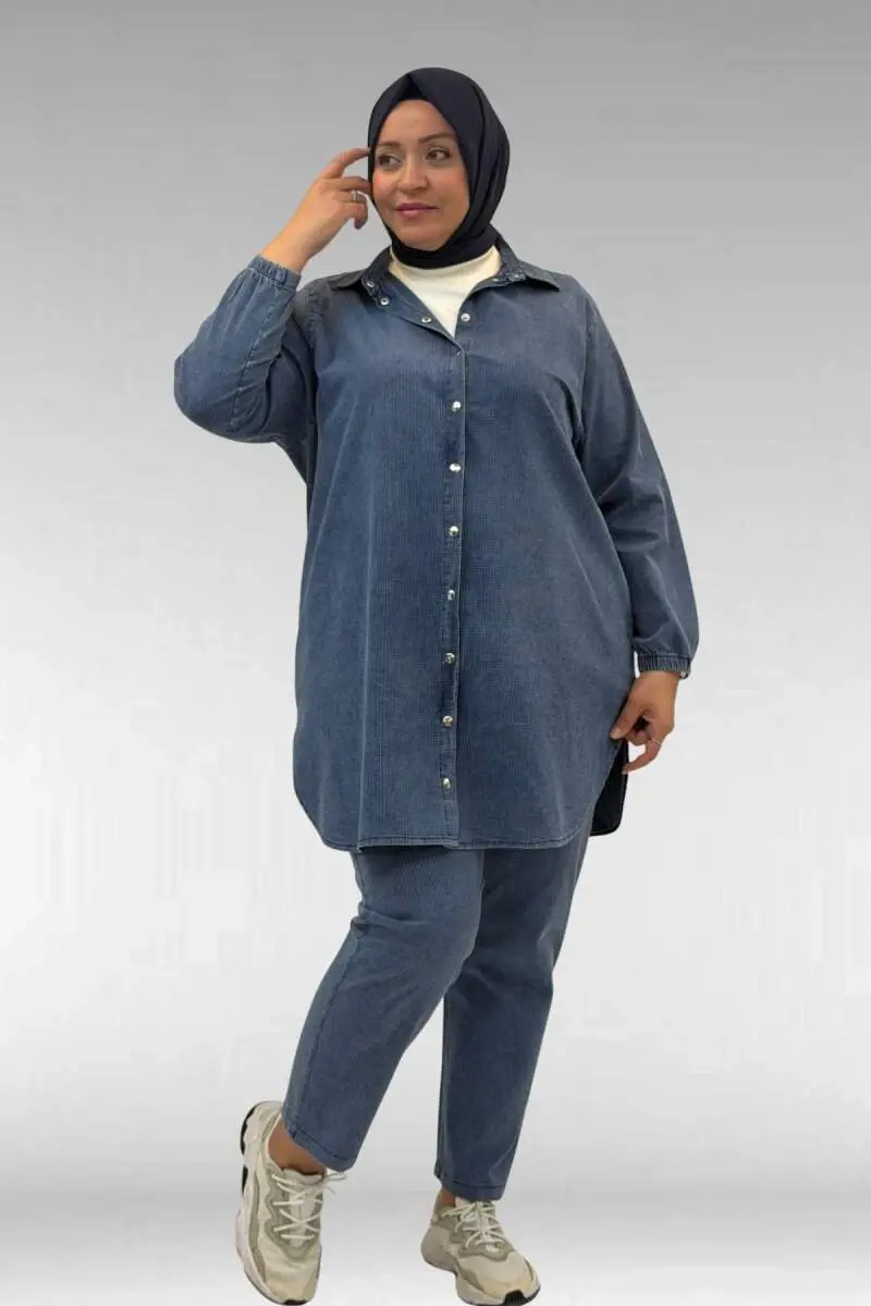 67042 Büyük Beden Kolları Lastikli Pantolonlu Takım - Lacivert