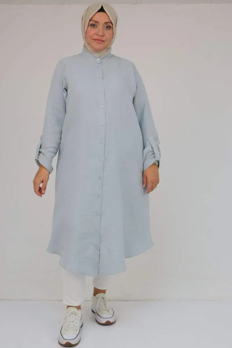 68013 Büyük Beden Tek Düğme Detaylı Müslin Gömlek - Gri