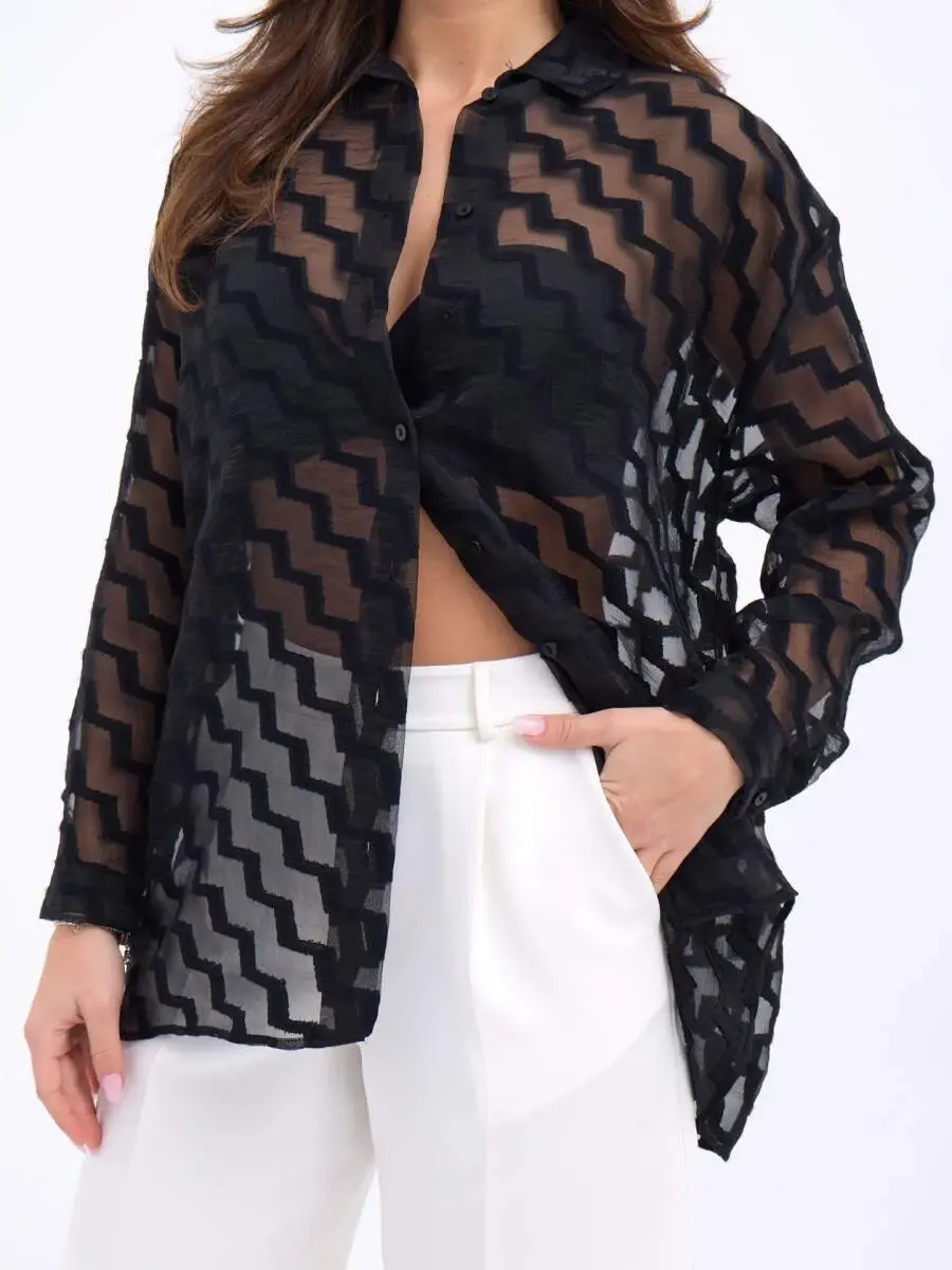 6885 GÖMLEK-LATİNAModelin Ölçüleri: Boy: 165, Kg: 55, Göğüs: 90, Bel: 72, Kalça: 100Modelin üzerindeki ürün M/38 bedendir