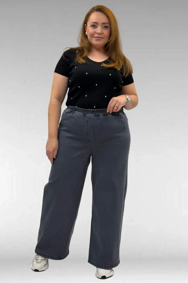 69003 Büyük Beden Beli Lastikli Bolpaça Kot Pantolon - Koyu Gri