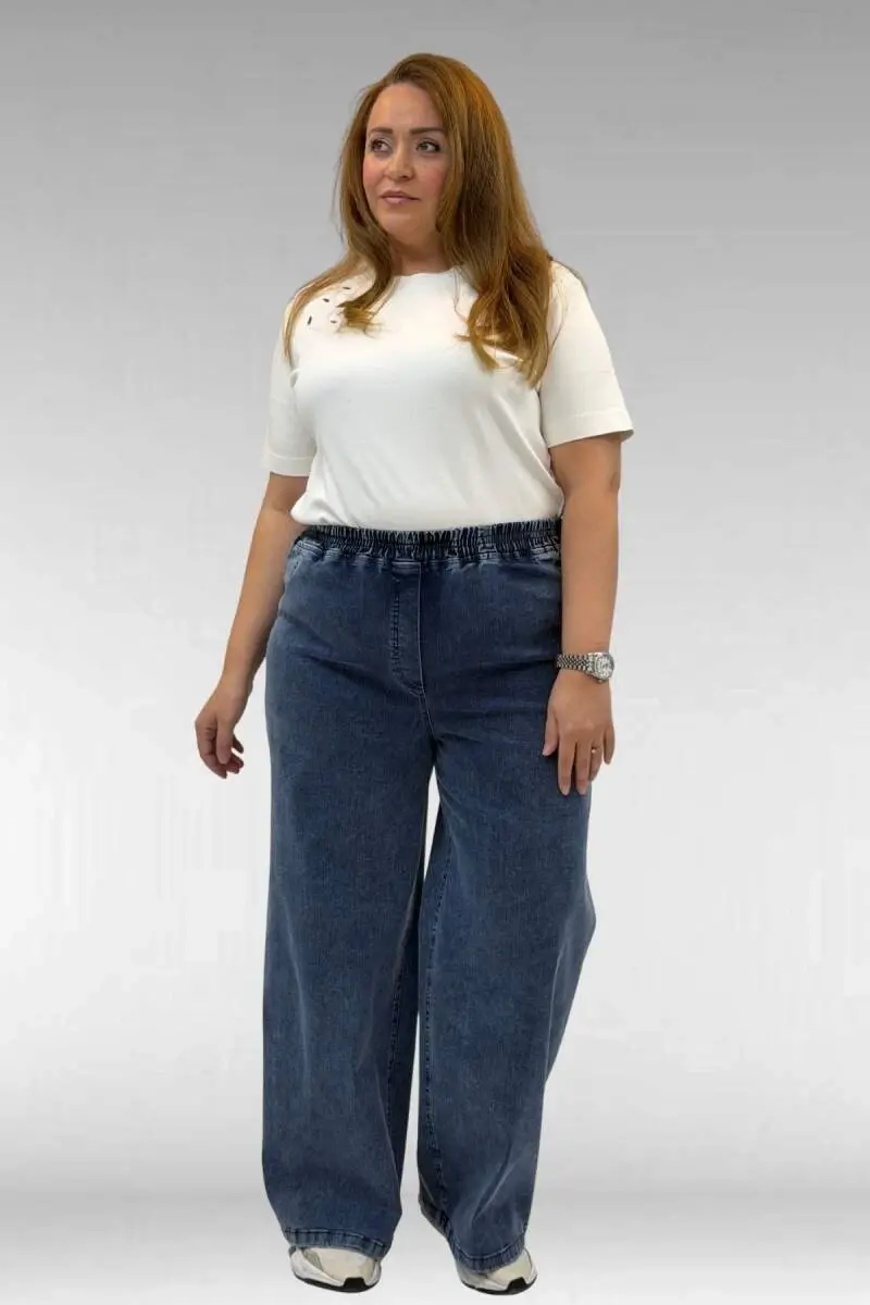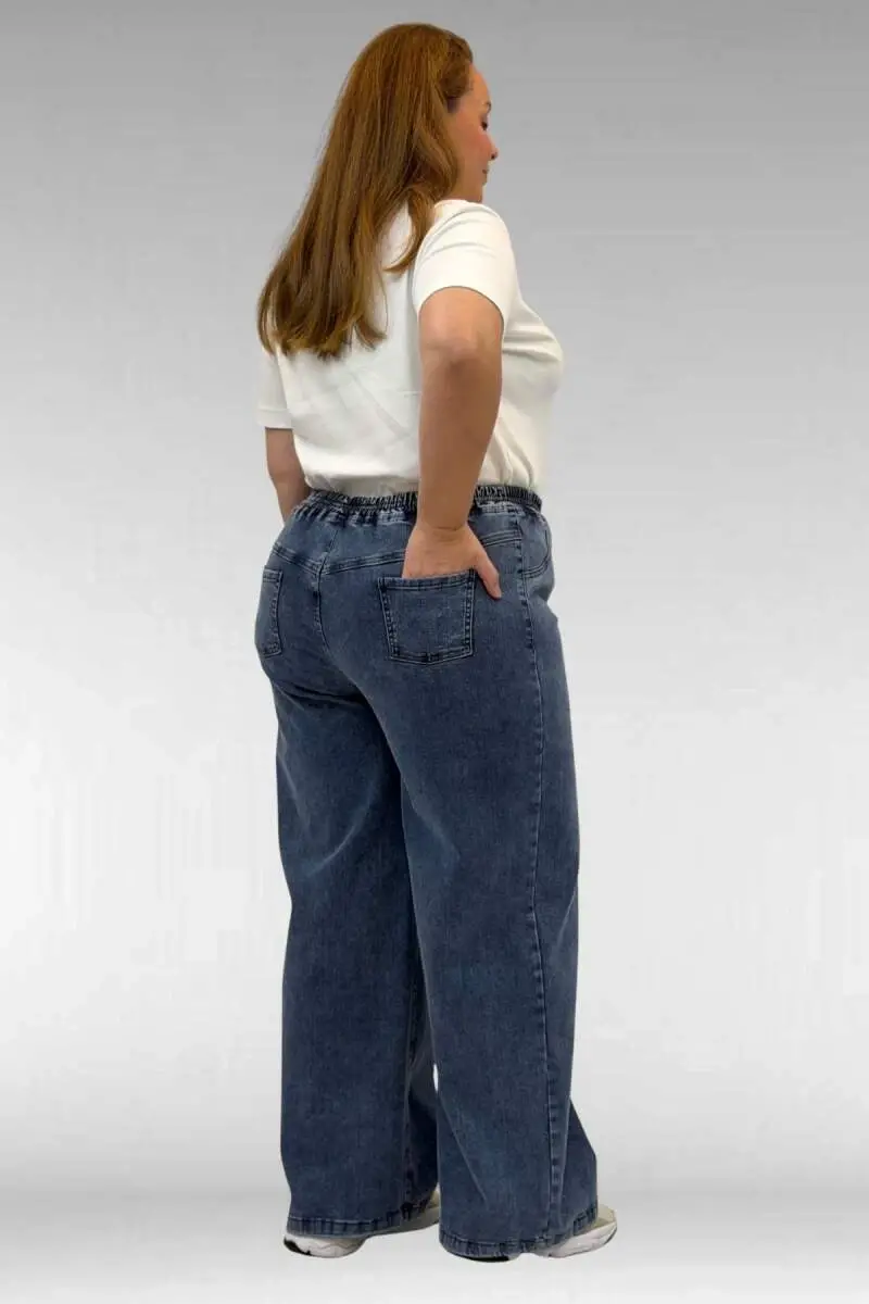 69003 Büyük Beden Beli Lastikli Bolpaça Kot Pantolon - Koyu Mavi