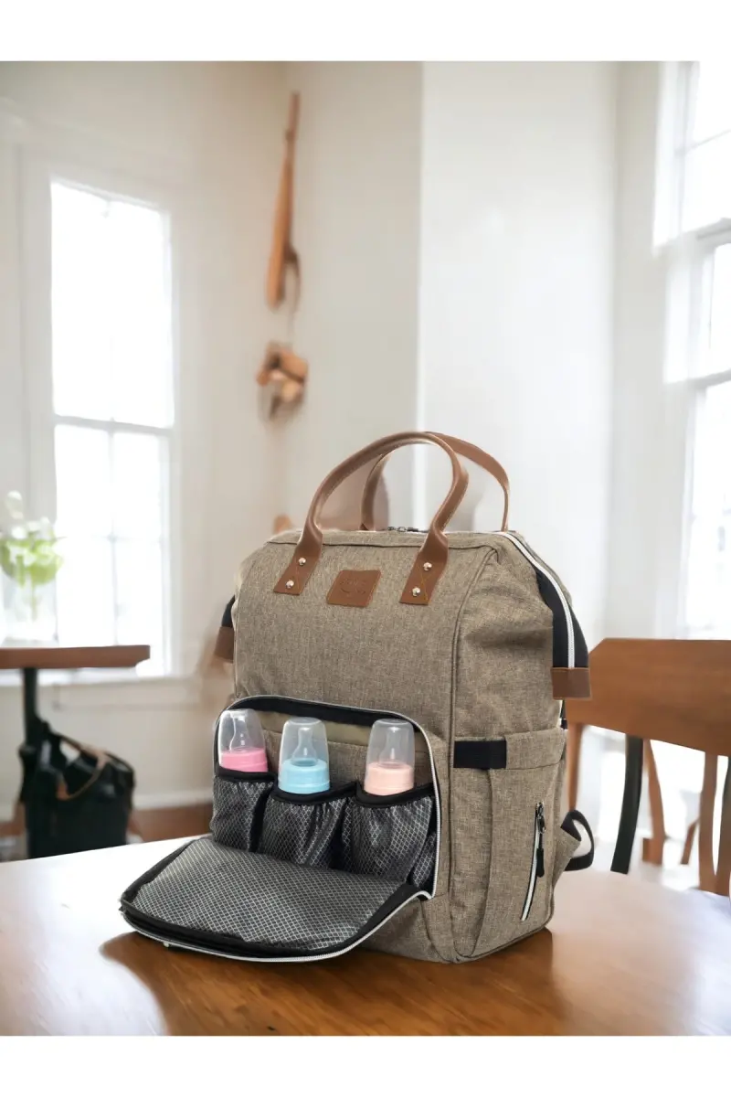 6'ЛИ НАБОР ДЛЯ НОВОРОЖДЕННЫХ (ВЫПИСКА ИЗ РОДДОМА, СУМКА ДЛЯ МАМЫ И МАЛЫША НА ПЛЕЧО И СПИНУ, ОДЕЯЛО, НОСКИ И ПЛАТОК) - БЕЖЕВЫЙ