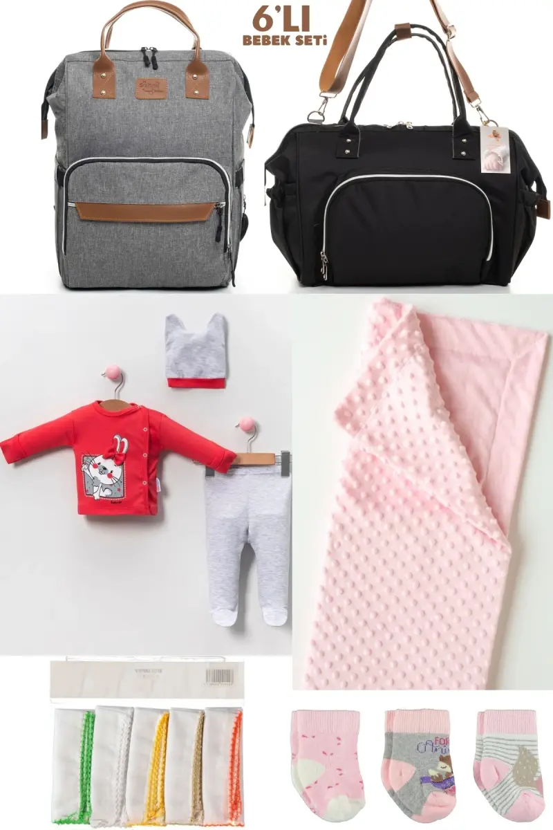 Набор для новорожденных из 6 предметов - серый - это комплексный набор, тщательно разработанный для полного удовлетворения потребностей вашего новорожденного и ваших потребностей. Этот набор содержит основные продукты, которые вы можете использовать с момента выписки из больницы, и предлагает практичные решения, которые укрепляют связь между матерью и ребенком. Этот специальный набор, предлагаемый под гарантией Sahra Bebek, изготовлен из высококачественных и натуральных материалов, которые не повреждают нежную кожу вашего ребенка. Благодаря 100% хлопковому составу он имеет мягкую и дышащую текстуру, совместимую с кожей вашего ребенка. Сумка для мамы и ребенка, входящая в набор, обеспечивает простоту использования благодаря возможности ношения на плече и на спине. Это облегчает вашу жизнь благодаря большому внутреннему объему и удобным отделениям, где вы можете аккуратно хранить вещи вашего ребенка. Кроме того, одеяло, входящее в комплект, обеспечивает вашему ребенку тепло и безопасность, а также не забываются такие основные потребности, как носки и носовой платок. Этот набор, привлекающий внимание своим стильным и современным дизайном, представляет собой особый вариант, который вы можете с комфортом использовать с первых дней жизни вашего ребенка и предлагает визуальное пиршество с принтами. Тот факт, что он изготовлен с использованием органических материалов, означает, что вы можете безопасно использовать его, не причиняя вреда здоровью вашего ребенка. Трикотажный тип ткани обеспечивает длительное использование благодаря своей гибкой и прочной структуре и идеально подходит для повседневного использования. При выборе цвета предпочтение отдавалось натуральным и пастельным тонам, которые не вредят коже вашего ребенка. Этот набор для новорожденных из 6 предметов - это не просто необходимость, это выражение вашей заботы о вашем ребенке и о вас. Он разработан для облегчения жизни матерей во время беременности и младенчества, а также для обеспечения комфорта младенцев.