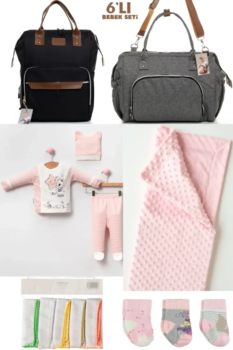 Set içeriği: Hastane çıkış seti, anne & bebek bakım çantası (omuz ve sırt çantası), battaniye, çorap, mendil. Renk: Siyah. Çanta ölçüleri: [Çanta ölçüleri eklenebilir]. Battaniye ölçüleri: [Battaniye ölçüleri eklenebilir]. Malzeme: [Kullanılan malzeme bilgisi eklenebilir]. Yıkama Talimatı: [Yıkama talimatları eklenebilir]. Bebeklerin hassas cildine uygun olarak üretilmiştir. Ürünlerimiz sağlığa zararlı maddeler içermez.
