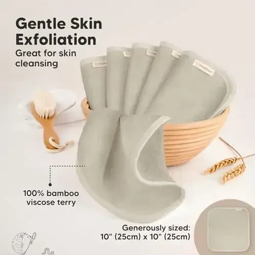 6-Pack Soft Baby Washcloths, Viscose from Bamboo - Kids, Newborn Bath Towels, Infant Shower, Toddler Reusable Face Towel, Gentle on Skin, Face Wash Cloths for Babies, 10x10 (Stone)