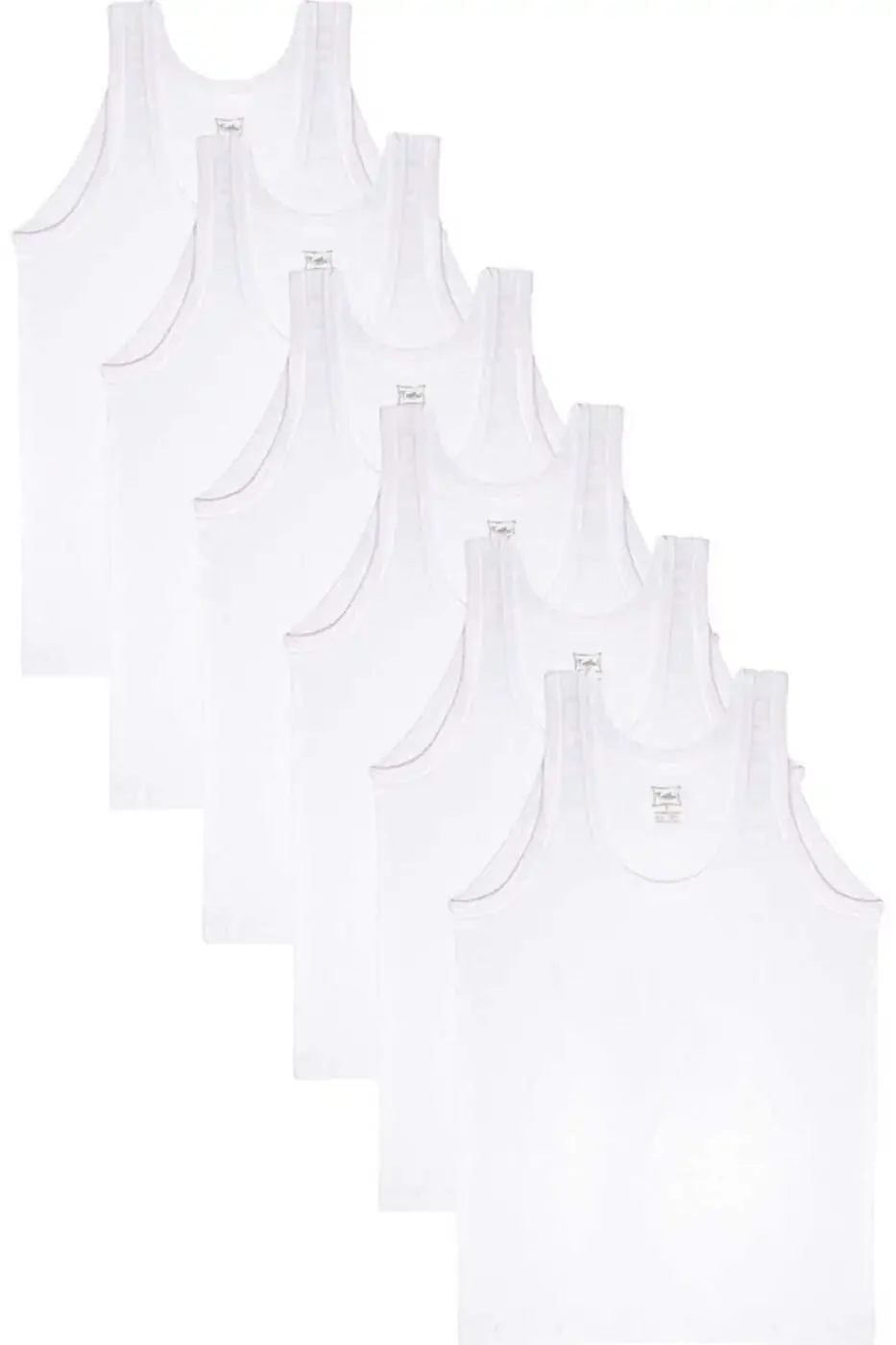 The 6-Pack Classic White Men's Undershirt, an essential part of your everyday wardrobe, is made from high-quality cotton fabric and features a breathable and comfortable design. Its classic white color and basic design make it a perfect match for any outfit.