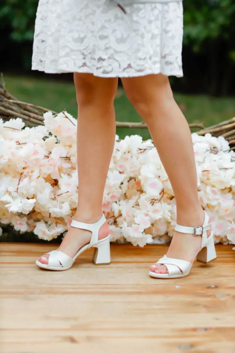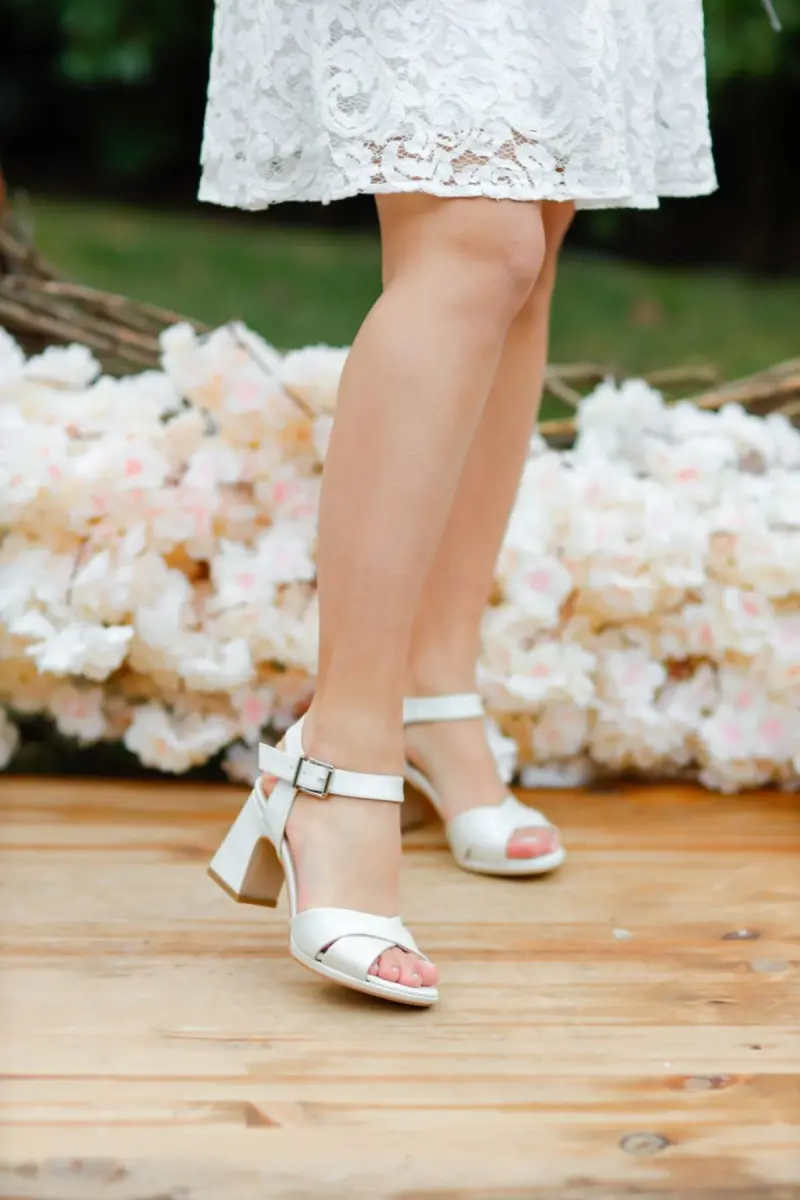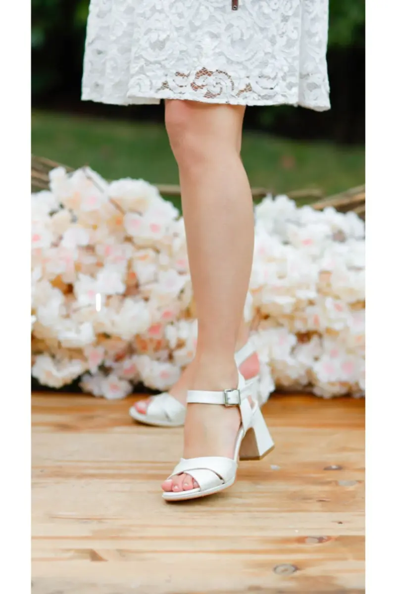 7 Cm Sedef Saten Gelin Ayakkabısı Koşma Garantili-Beyaz