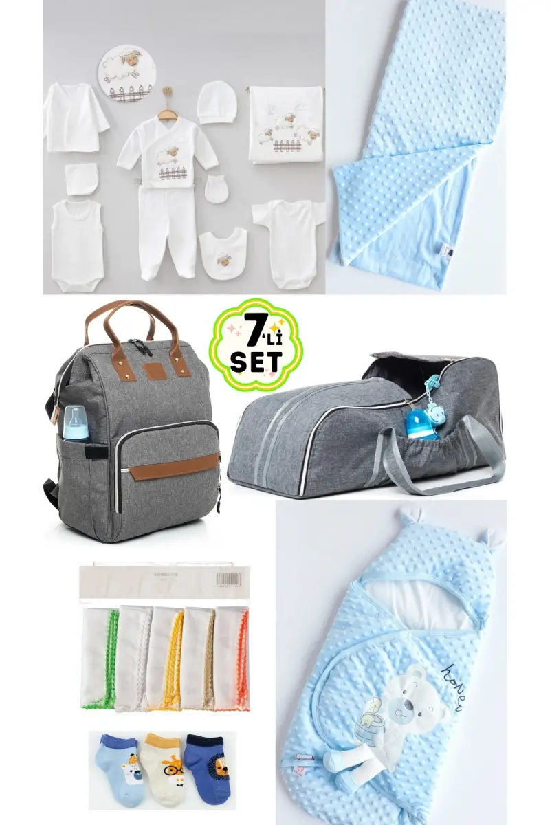 The 7-Piece Large Newborn Set - Grey brings together everything you will need from the first moments your baby says hello to the world. This special set aims to prioritize both your baby's comfort and health, and to make life easier for mothers. This set, carefully prepared by Sahra Bebek, includes a 10-piece hospital set that will meet your baby's basic needs from the hospital exit, a useful bag, a baby carrier where your baby can be safely carried, a warm swaddle, a soft blanket, a gentle wipe and cute socks. Moreover, it offers a stylish and useful option with its gray color. The fact that it is produced from 100% cotton material that does not harm your baby's sensitive skin distinguishes this set from others. Its cotton texture allows your baby's skin to breathe, minimizing the risk of irritation and allergies. Thanks to its knitted fabric structure, this set has a soft touch, allowing your baby to relax and have a peaceful sleep. Ideal for daily use, this set is designed practically and stylishly to suit your baby's needs. It adds joy to your baby's room with its lively and cute printed patterns and offers a visually pleasant experience. This 10-piece set collects everything you need from the hospital exit in a single package. Thus, instead of having to search for separate products, you can meet all your needs with a single set. The fact that it is produced using organic materials ensures that it does not harm your baby's health and allows you to make an environmentally friendly choice. Produced in accordance with the principle of sustainability, this set stands out as an environmentally friendly option. This set, which belongs to the maternity collection, has been carefully prepared for the needs of mothers and babies. By offering everything you need in one place in your baby's first days and beyond, it makes life easier for mothers and supports them. The 7-Piece Large Newborn Set - Gray will be your baby's closest friend from the moment he or she comes into the world and will accompany him or her with love.