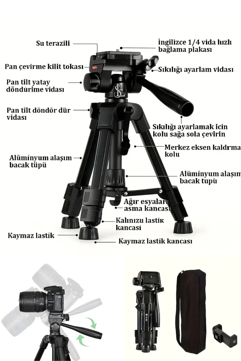 70 CM Profesyonel Telefon Kamera Tutucu Çantalı Tripod, Su Terazili 3 Ayaklı Tripod-610 ile fotoğraf ve video çekimlerinizi bir üst seviyeye taşıyın! Bu tripod, hem profesyonel hem de amatör kullanıcılar için ideal bir çözümdür. 70 cm uzunluğu sayesinde farklı açılardan çekim yapma imkanı sunarken, su terazisi özelliği mükemmel hizalamayı garanti eder. Üç ayaklı tasarımı, cihazınıza üstün stabilite sağlayarak titremeleri en aza indirir ve net, keskin görüntüler elde etmenize yardımcı olur. İster manzara çekimi yapın, ister portre, isterse de hareketli videolar kaydedin, bu tripod her türlü ihtiyacınızı karşılayacak şekilde tasarlanmıştır.Taşıma kolaylığı düşünülerek tasarlanan çantası sayesinde tripodunuzu her yere rahatlıkla götürebilirsiniz. Seyahatlerinizde, doğa yürüyüşlerinizde, etkinliklerde veya stüdyo çekimlerinizde, tripodunuz her zaman yanınızda olacak ve size eşsiz çekim deneyimleri sunacaktır. En siga güvencesiyle ithal edilen bu ürün, kalite ve performansı bir arada sunar. Yetkili temsilcisi ve ifa hizmet sağlayıcısı olarak En siga, güvenilir bir satın alma deneyimi sunmayı hedefler. Ürünün siyah rengi, şık ve modern bir görünüm sunarken, her türlü ortama uyum sağlar.Tripodun kullanımı son derece kolaydır. Telefonunuzu veya kameranızı hızlı ve güvenli bir şekilde monte edebilir, istediğiniz açıyı kolayca ayarlayabilirsiniz. Su terazisi sayesinde, yatay ve dikey hizalamayı kolayca kontrol edebilir, kusursuz kompozisyonlar oluşturabilirsiniz. Üç ayaklı tasarım, farklı zeminlerde bile stabil bir duruş sağlar. İster düz bir zeminde, ister engebeli bir arazide çekim yapın, tripodunuz güvenli ve dengeli bir şekilde duracak, böylece çekimlerinize odaklanabileceksiniz.70 CM Profesyonel Telefon Kamera Tutucu Çantalı Tripod, Su Terazili 3 Ayaklı Tripod-610, sadece bir tripod değil, aynı zamanda yaratıcılığınızı özgürce ifade etmenizi sağlayan bir araçtır. Fotoğraf ve video çekimlerinizi daha profesyonel hale getirmek, daha kaliteli içerikler üretmek ve daha fazla keyif almak için bu tripodu mutlaka deneyin.