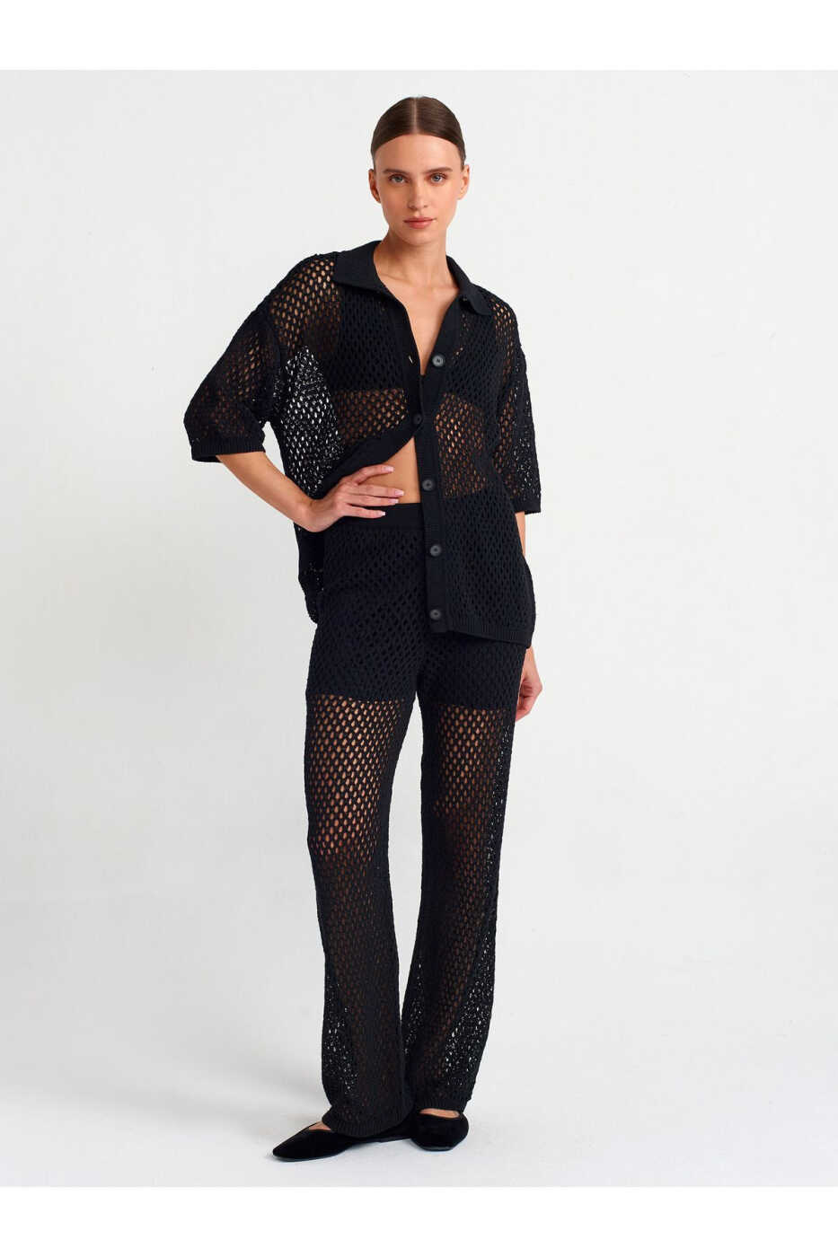 The 70159 Lace-Up Lined Knit Trousers, combining style and comfort, is destined to become an indispensable piece in your wardrobe. Made from soft and breathable knit fabric, the trousers offer all-day comfort thanks to their lining. The lace-up pattern adds a feminine touch to your style, allowing you to create different combinations.