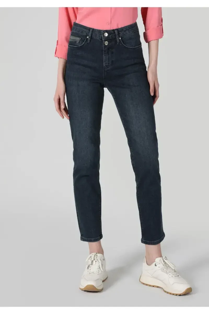 Combining style and comfort, the 703 Carla Slim Fit Regular Waist Straight Leg Blue Women's Trousers is a must-have piece in every woman's wardrobe. With its quality fabric, flawless cut and stylish design, you can use this trouser on any occasion.