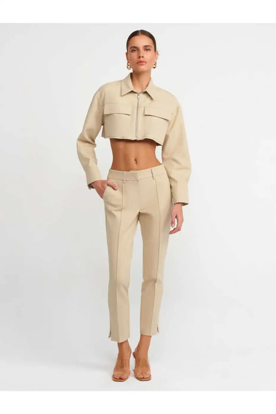 71237 Fermuarlı Pantolon - Taş | Şık ve Rahat