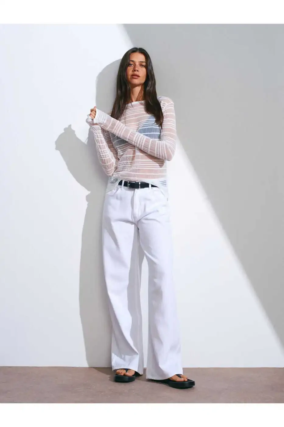 71480 Keng Oyoqli Jinsi Shimlaringizni oq futbolka, rangli bluzka yoki zamonaviy ko'ylak bilan birlashtirishingiz mumkin. Kroссовkalar, sandal yoki to'pig'li poyabzallar bilan to'ldirishingiz mumkin.