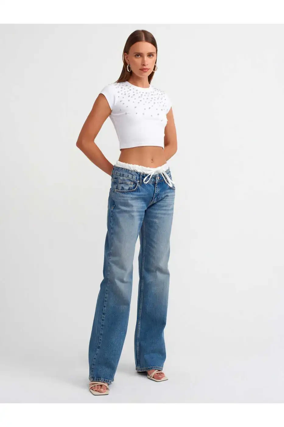 You can add style to your everyday chic by combining the 71494 Satin Boxer Detail Denim Pants with basic t-shirts. You can also adapt it to evening chic with a stylish blouse and heels.